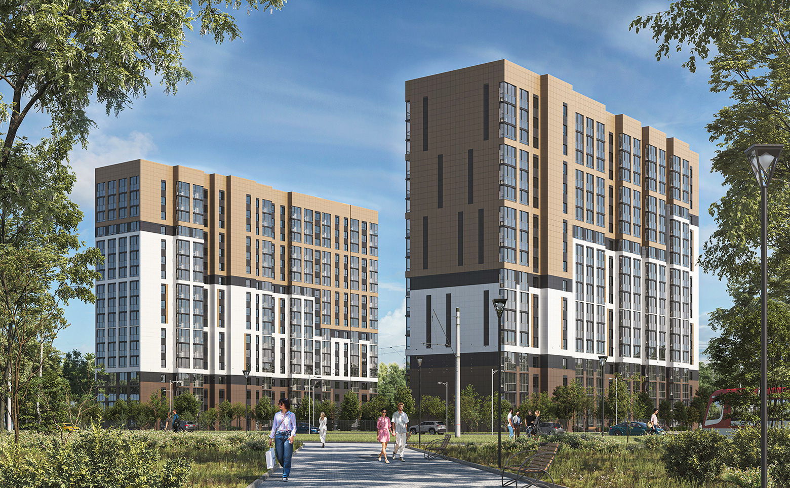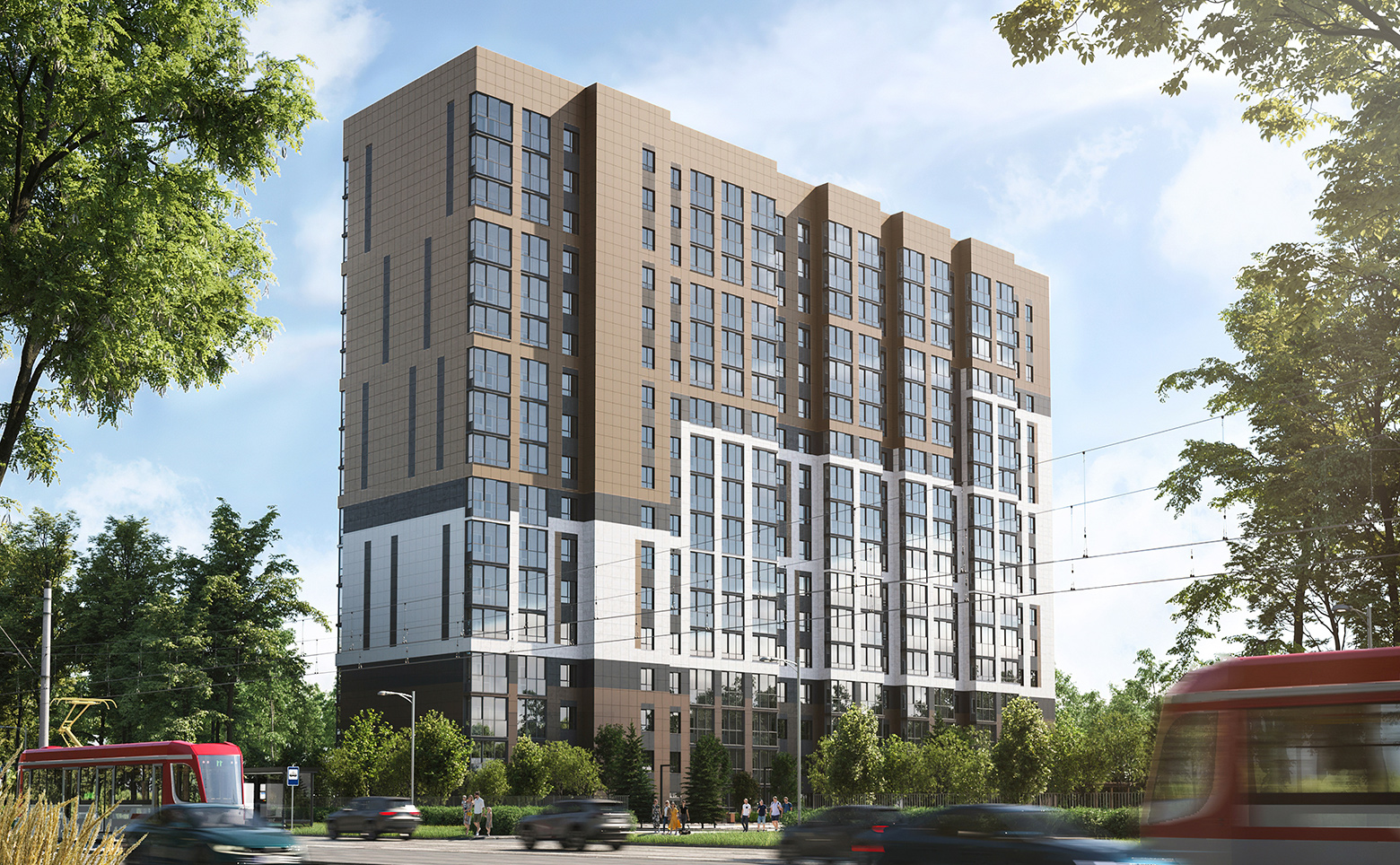 Проект представляет собой комплексную застройку из быстровозводимых крупнопанельных домов высотой 17 этажей. В отделке фасадов используется современный навесной вентилируемый фасад, окрашенный атмосферостойкой краской светлых и темных оттенков. Входы в подъезды удобно расположены на уровне земли, а двери выполнены из светопроницаемого профиля. Внутренние помещения подъездов и места общего пользования разработаны дизайнерским бюро в едином стиле, на первом этаже в каждой секции расположены колясочные и почтовые ящики.
