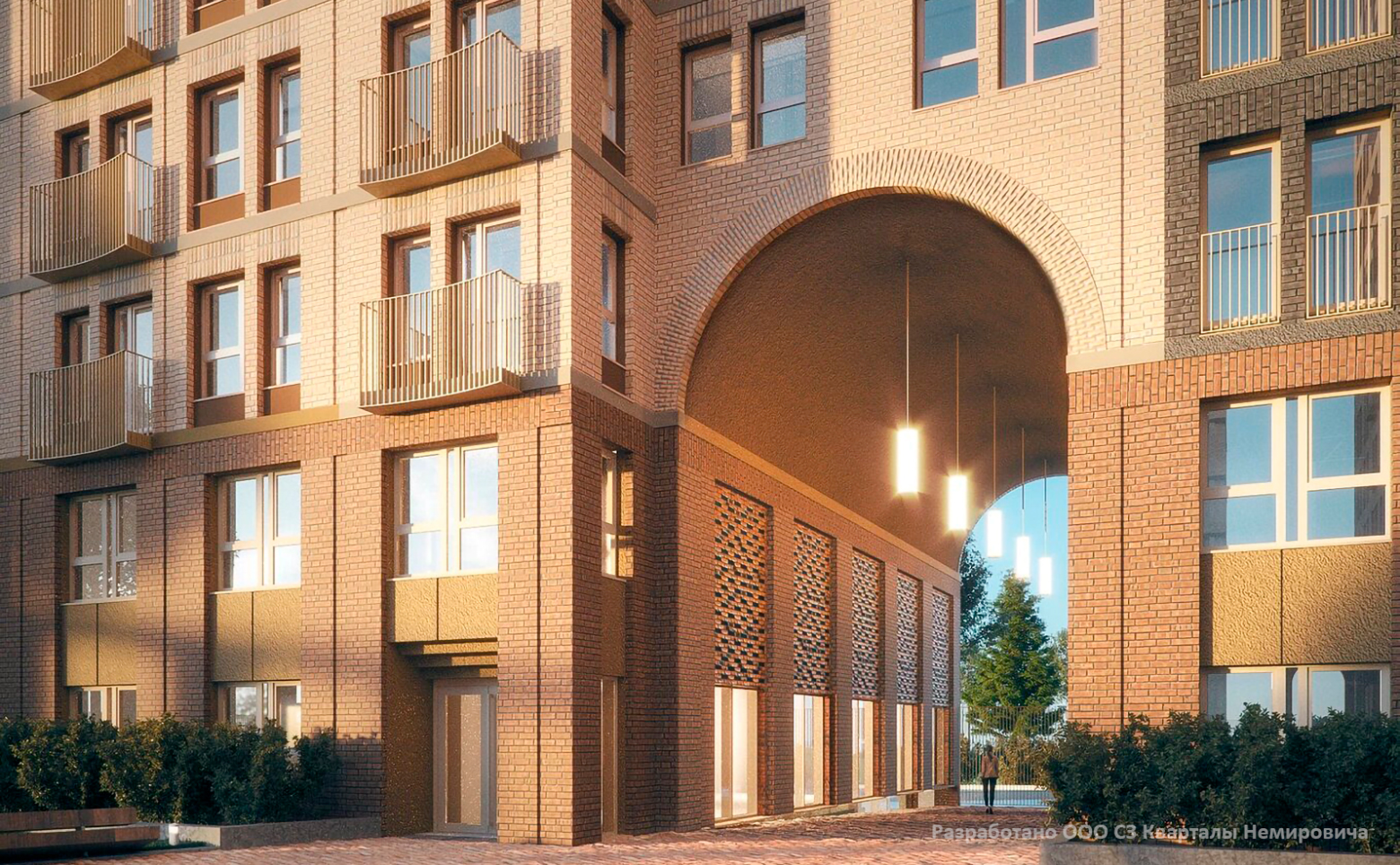 Проект представляет собой комплекс из 4 секций разного масштаба и архитектуры фасадов. Между ними прочитываются композиционные связи, образующие единый ансамбль. Объемы и детали композиции выверены в классических пропорциональных соотношениях — золотое сечение и диагональ квадрата. В разработке проекта участвовали европейское бюро Drom и бюро АПМ Фефелова В.В. Проектом предусмотрена дизайнерская отделка входных групп и установлены современные лифты.