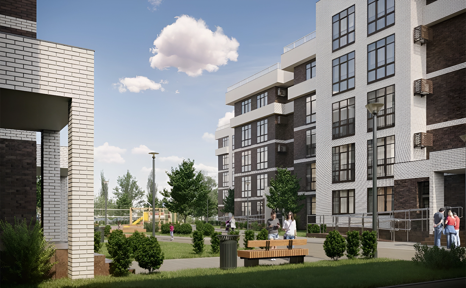 На территории комплекса выполнен ландшафтный дизайн, установлены спортивная площадка с тренажерами, а также детская площадка для детей дошкольного и школьного возраста. На первых этажах корпусов расположены коммерческие помещения.