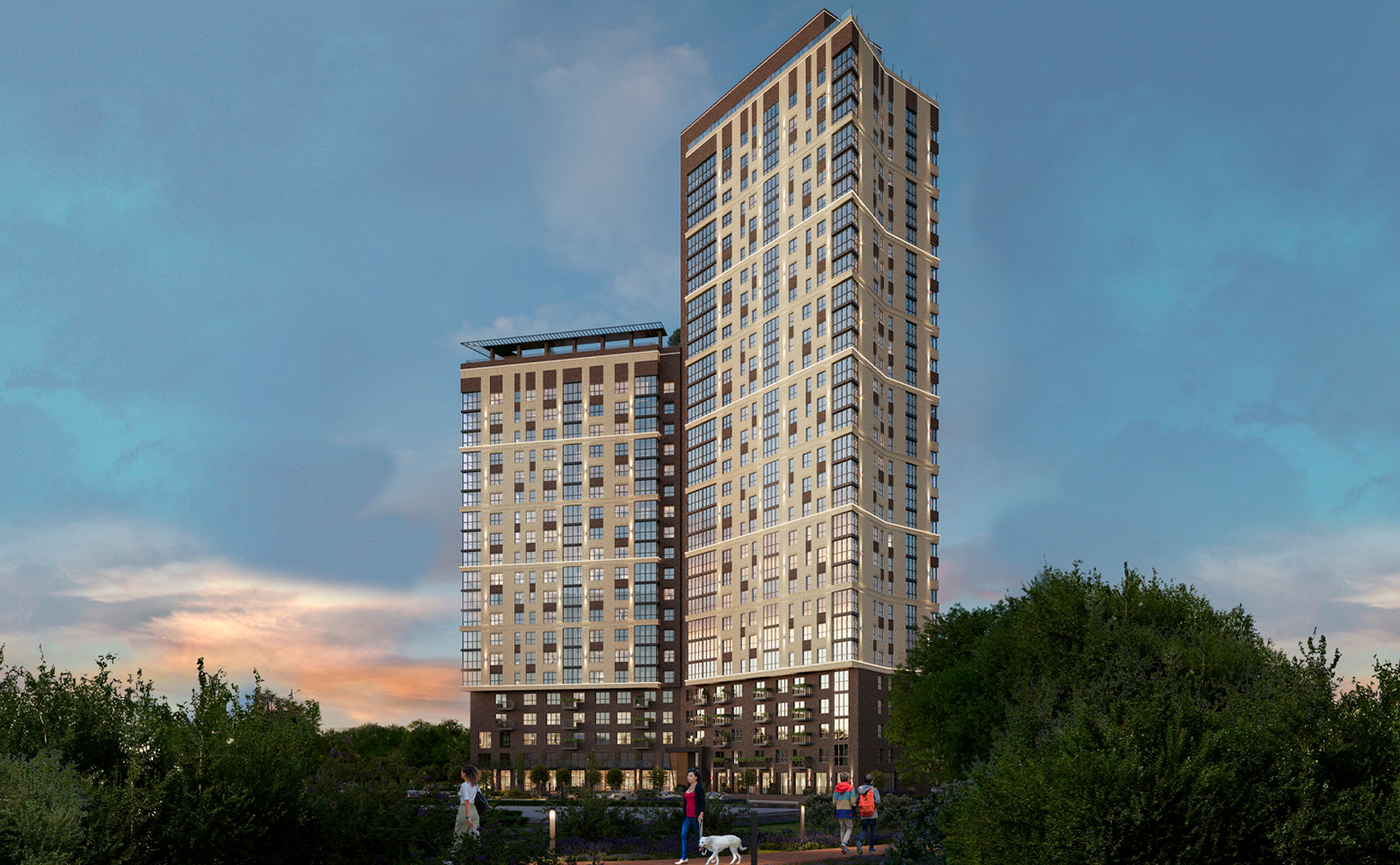 Жилой комплекс представлен зданиями высотой от 21 до 30 этажей, построенными по кирпично-монолитной технологии. Фасады облицованы керамическим кирпичом и дополнены архитектурной подсветкой. Кондиционеры монтируются скрытым способом, чтобы сохранить чистоту фасадных линий. Входные группы отделаны деревом и керамогранитом. В каждом корпусе установлены пассажирские и грузовые лифты.