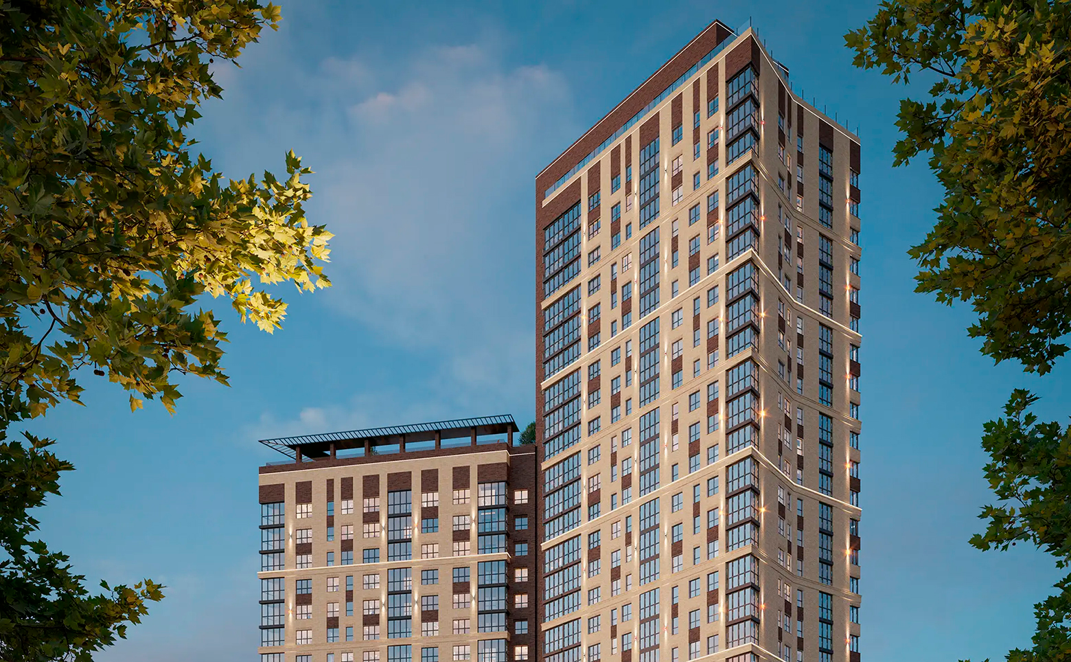 В проекте предусмотрены студии и квартиры с 1–3 комнатами, в том числе просторные пентхаусы с террасами. Установлены панорамные окна, потолки — от 2,7 до 3 метров. Жилье передается без отделки: возведены основные бетонные конструкции, перегородки между санузлом и жилыми комнатами. В санузлах выведены системы водоснабжения и канализации, выполнено базовое подключение к электросети.