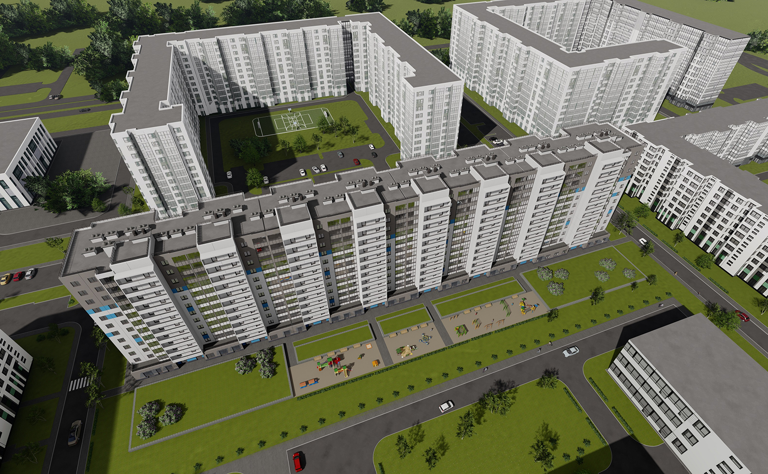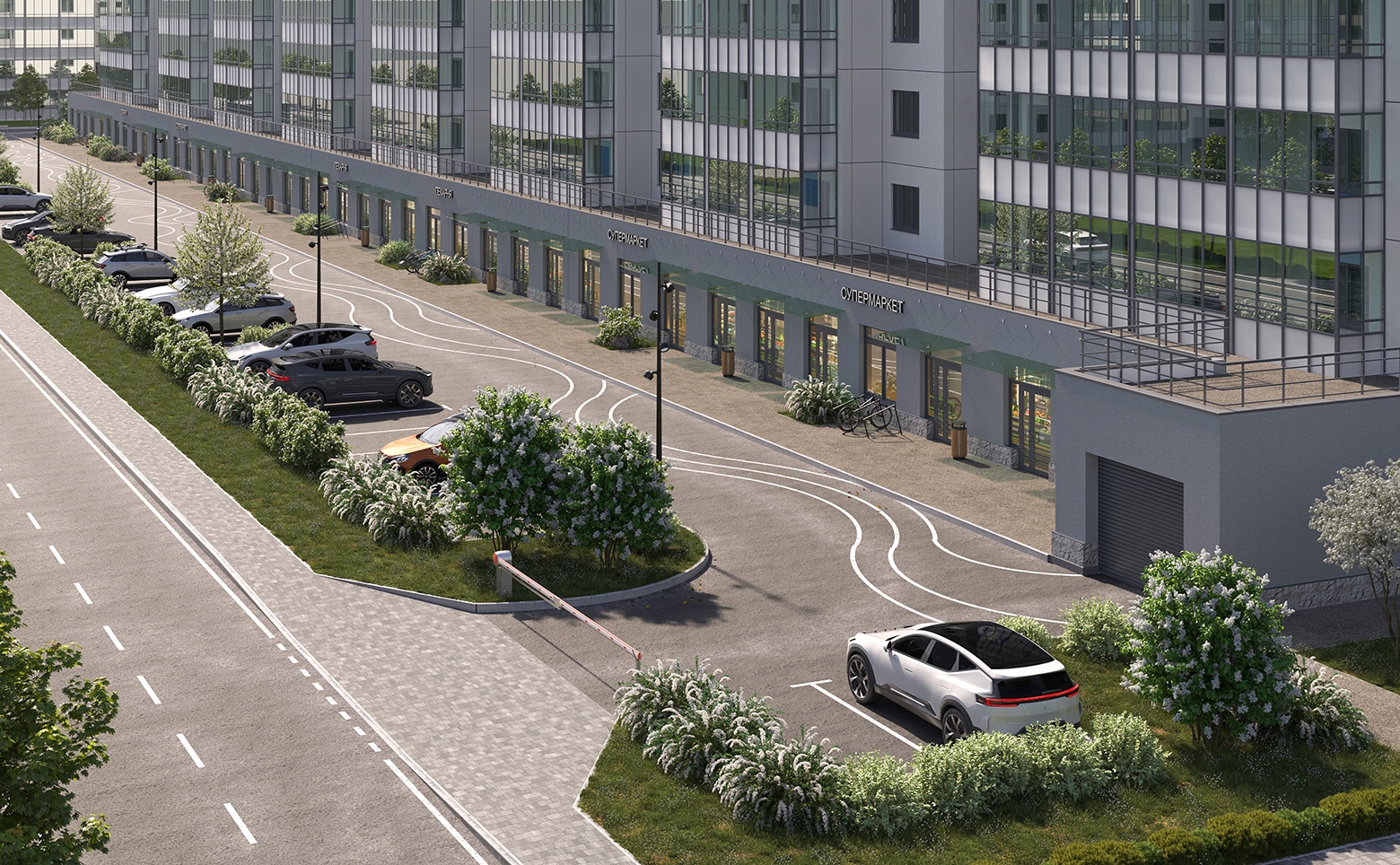 В проекте предусмотрен свой закрытый двор без машин, зоны отдыха, детская и спортивная площадки. Коммерческие помещения расположены на первых этажах проекта, а для владельцев автомобилей предусмотрен подземный паркинг и стоянка.