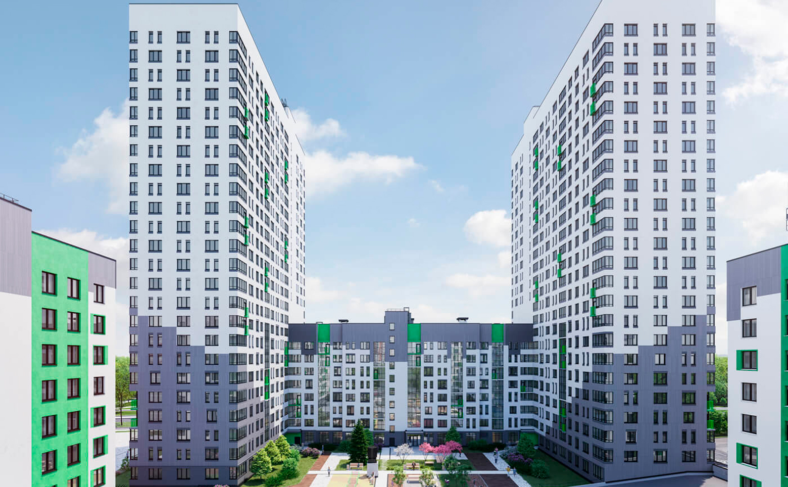 Жилой комплекс представляет собой 2 высотные секции по 24 этажа, объединенные 8-этажным модулем. Проект возведен по технологии кирпично-монолитного строительства, с фасадами, облицованными штукатуркой. Каждый подъезд имеет 2 входа — с внешней стороны дома и с внутренней территории. На первом этаже предусмотрены колясочные и места для хранения велосипедов или самокатов. Установлены пассажирский и грузовой лифты.