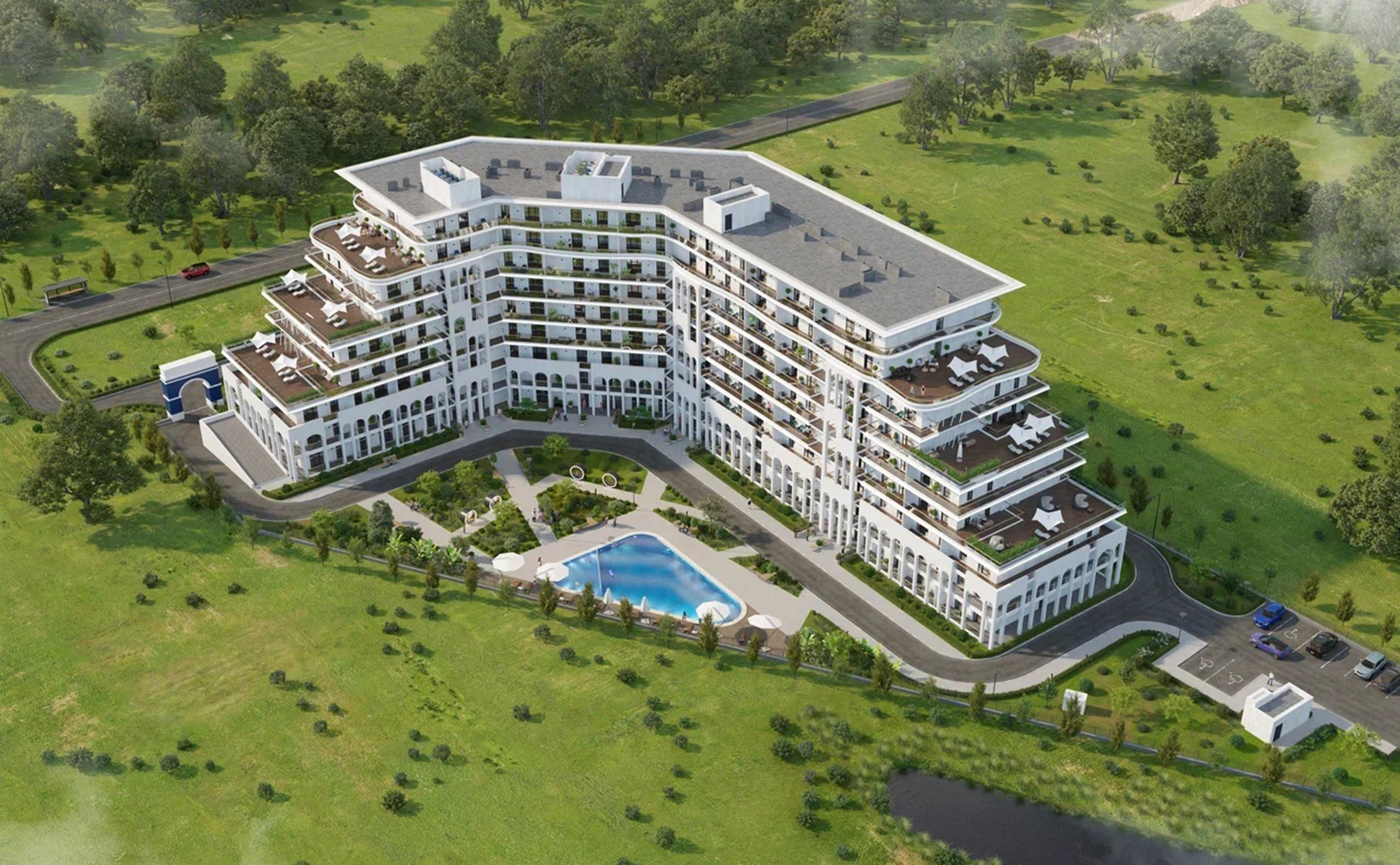 У комплекса благоустроенная закрытая территория с ландшафтным озеленением, круглосуточным видеонаблюдением. В проекте предусмотрена концепция «двор без машин». Для владельцев автомобилей оборудован подземный паркинг.
