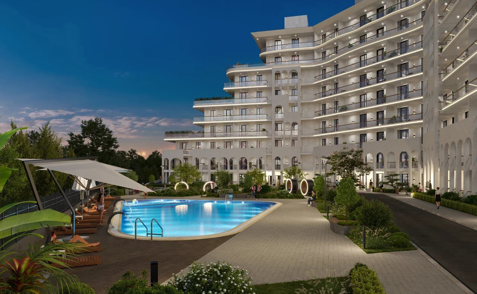 Гостиничный комплекс расположен в поселке Нижнее Джемете. В пешей доступности спа комплексы, бассейны, рестораны. До моря — 15 минут пешком.