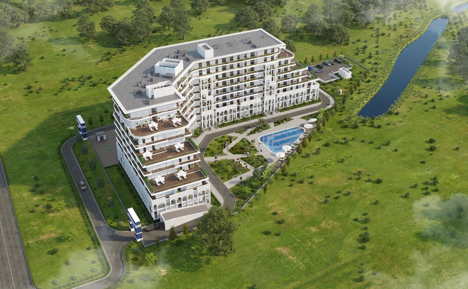 В гостиничном комплексе представлены планировочные решения от студий до европланировок. Сдаются они с чистовой отделкой, панорамными окнами и высотой потолков 3,45 метра.