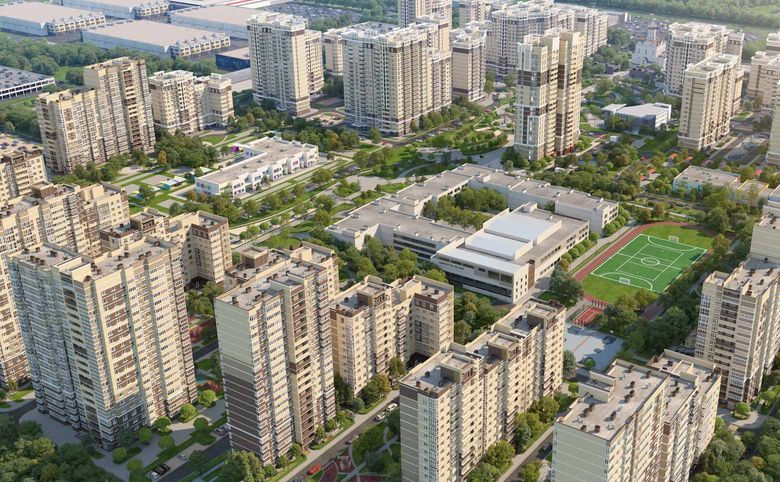 Это комплексная застройка из более 50 многоэтажных домов на территории 52 га. Фасады облицованы кирпичом светлого и темного оттенков. В домах выполнена дизайнерская отделка входных групп и установлены современные лифты с источником бесперебойного питания и средствами экстренной связи.