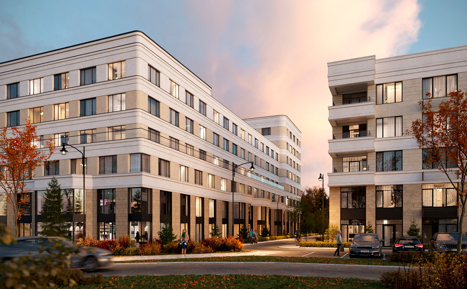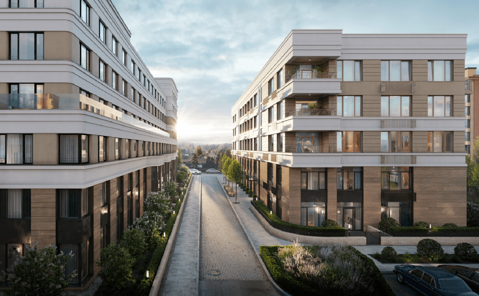 Жилой комплекс построен с использованием авторского архитектурного стиля. Декоративные элементы фасада выполнены в классическом стиле. В отделке строгого, но элегантного фасада использованы дорогостоящие материалы, экологически чистые и стойкие к погодным условиям. Архитектурное остекление и декоративные элементы придают зданию легкость и динамику. Во всех корпусах выполнена дизайнерская отделка входных групп, установлены современные лифты и спроектированы кладовые помещения.
