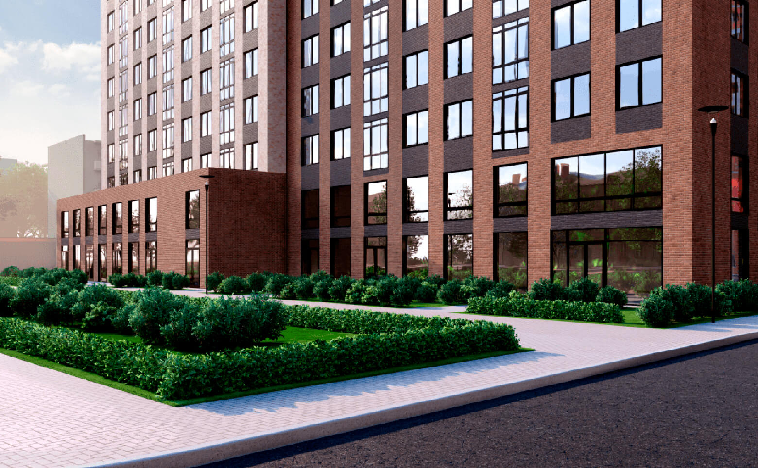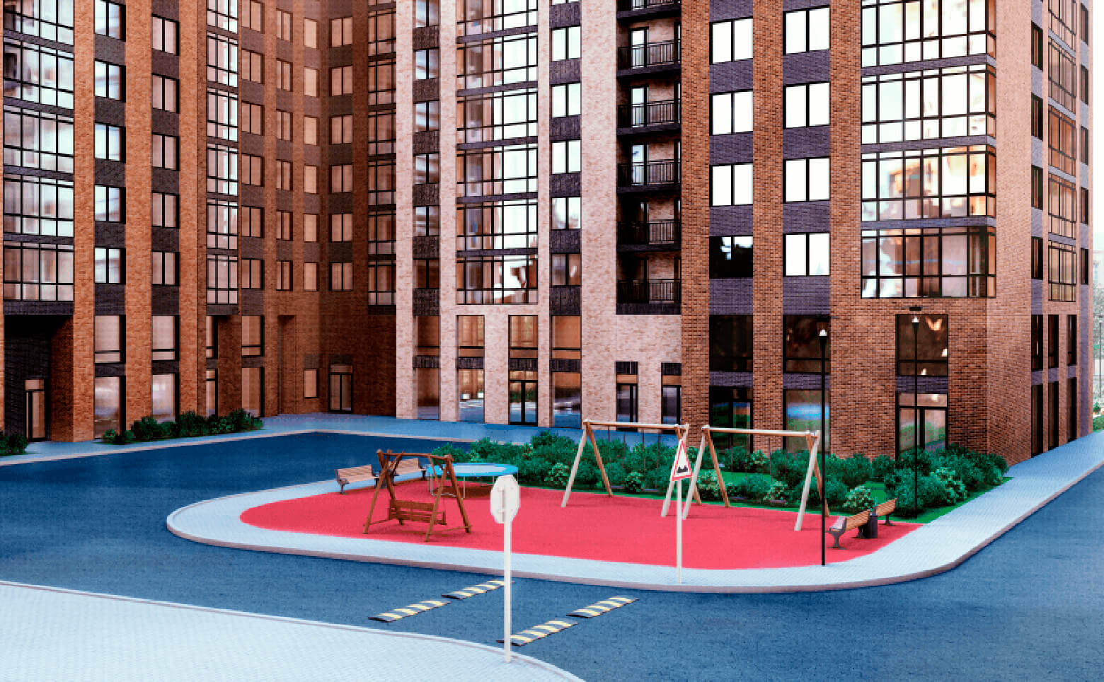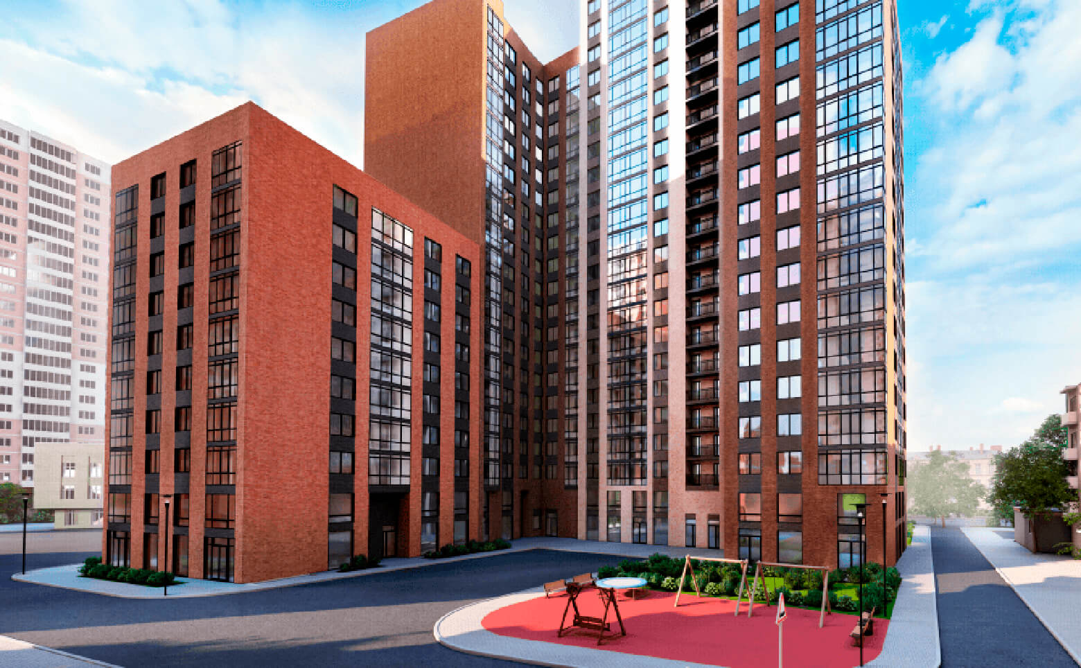 Жилой комплекс комфорт-класса с обустроенной площадкой для детей и обеспеченной безбарьерной средой.