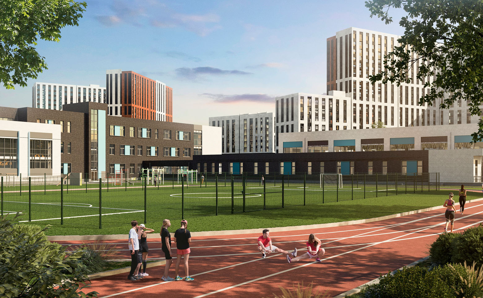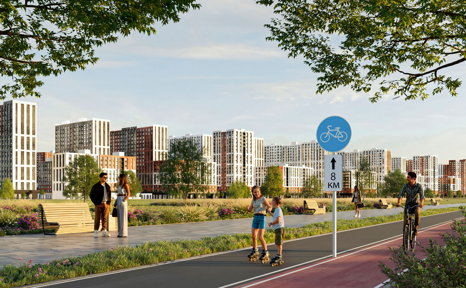 В проекте сформирована современная городская среда с собственным парком площадью 9 га, храмовым комплексом и пешеходным бульваром Круг семьи. Здесь расположены спортивные и детские площадки, зоны для отдыха и барбекю, прогулочные аллеи. Жителям доступны фитнес-центр, кафе, рестораны и магазины. В составе проекта предусмотрено строительство школы на 1 700 мест с 25-метровым бассейном и 5 детских садов на 1 490 мест. На первых этажах многоуровневых парковок — паркхабов — размещено более 61 000 кв. м коммерческих помещений.