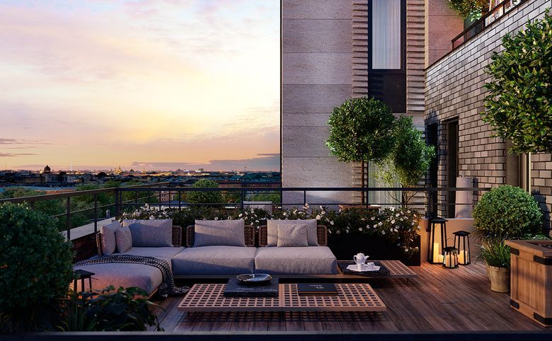 Среди необычных планировок в Talento можно выделить квартиры с террасами площадью от 22 до 55 м², варианты с просторными мастер-спальнями и кухнями-столовыми, лоджиями и балконами, окнами в ванной и комнатами на три стороны. Последние этажи займут пентхаусы с персональным лифтом и открытыми террасами.