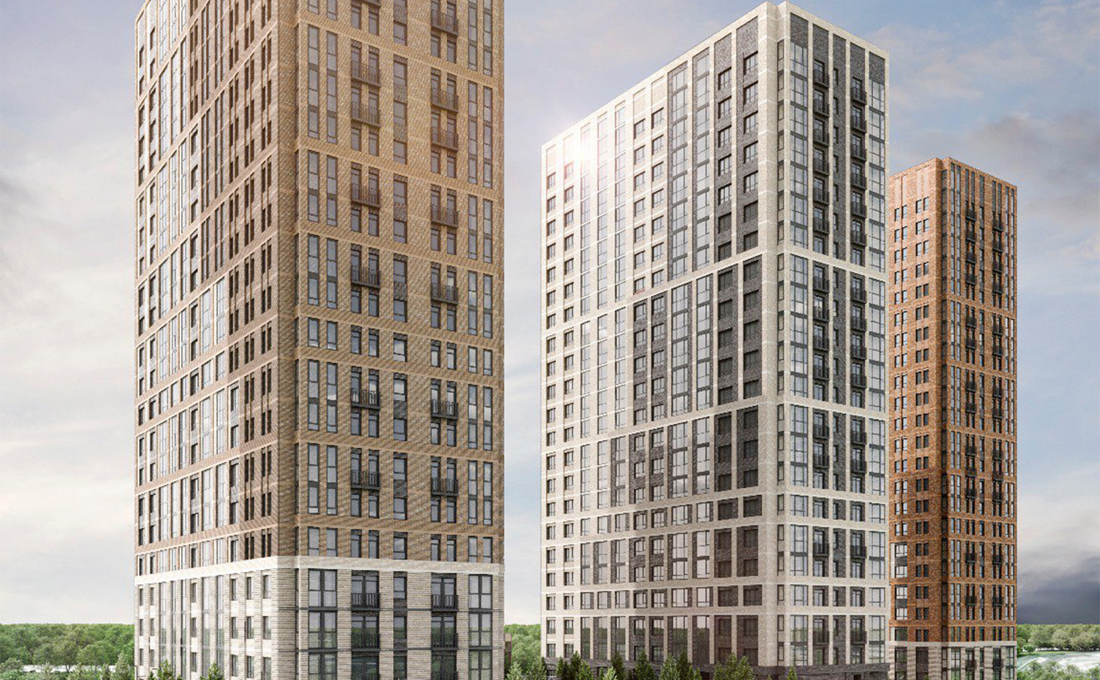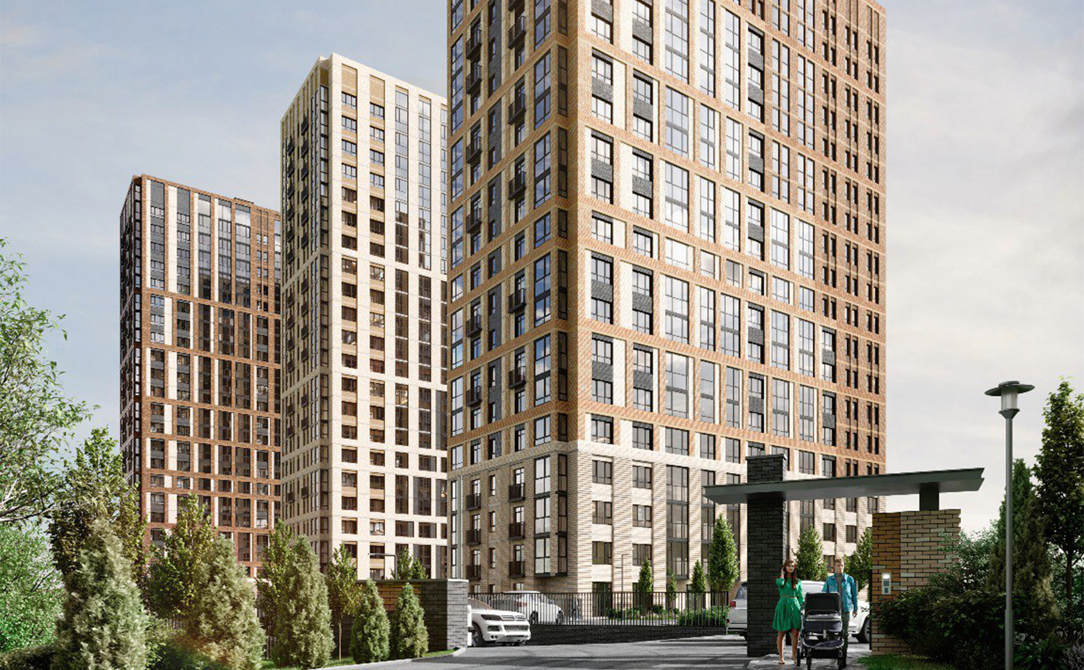 Жилой комплекс включает в себя 3 корпуса высотой 22-23 этажа. Дома возводятся по долговечной кирпично-монолитной технологии. Фасады облицованы кирпичом светлых и темных оттенков. В проекте выполнена дизайнерская отделка входных групп, установлены современные скоростные лифты. На первых этажах расположены колясочные. Кладовые помещения расположены на цокольных этажах домов. Доступ осуществляется на лифте через паркинг.