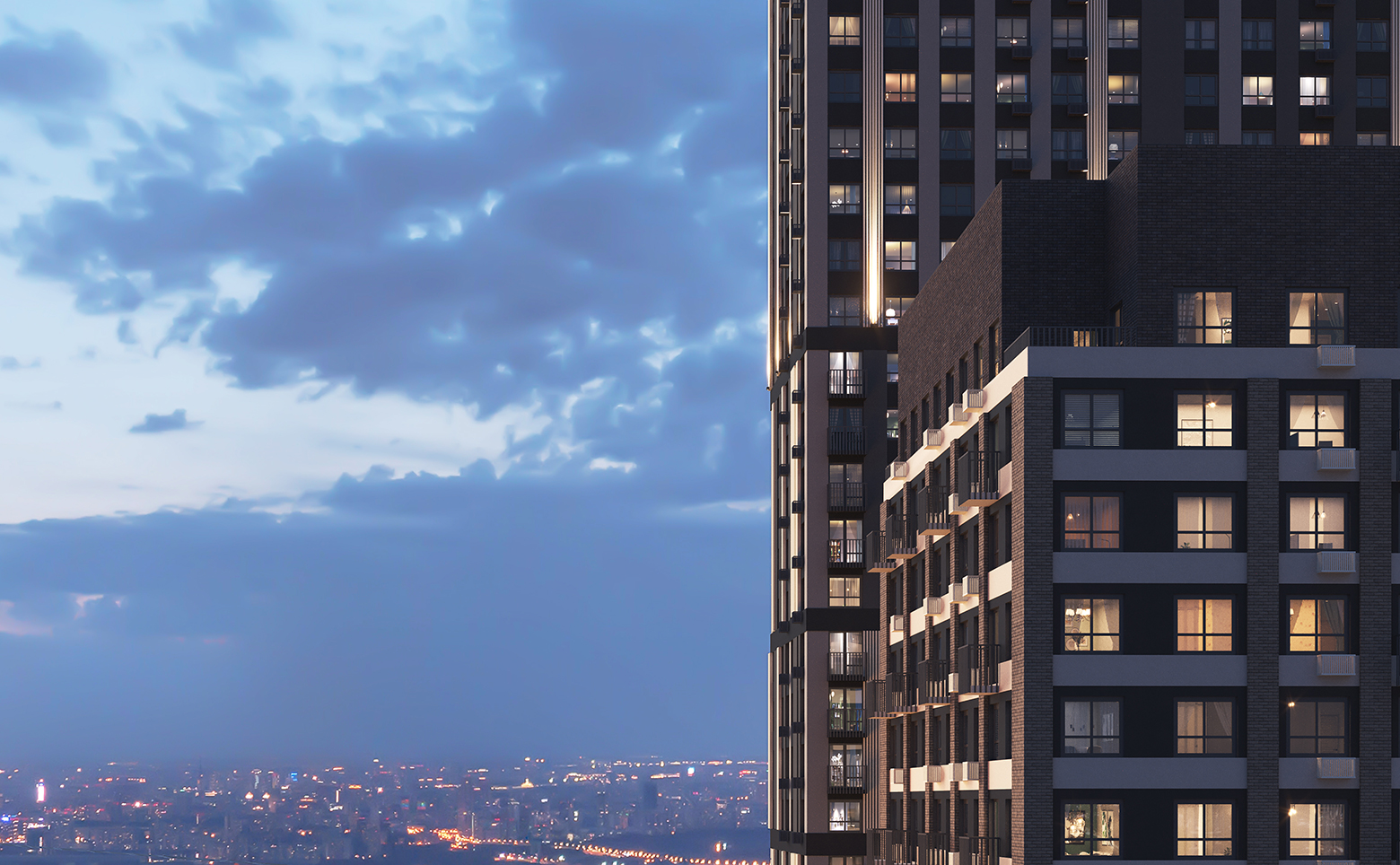 Жилой комплекс состоит из 4 домов высотой от 13 до 29 этажей. Проект возведен по монолитной технологии строительства с комбинированными фасадами. На первом этаже расположена дизайнерская зона ожидания, колясочная. Установлены пассажирский и грузовой лифты бизнес-класса.