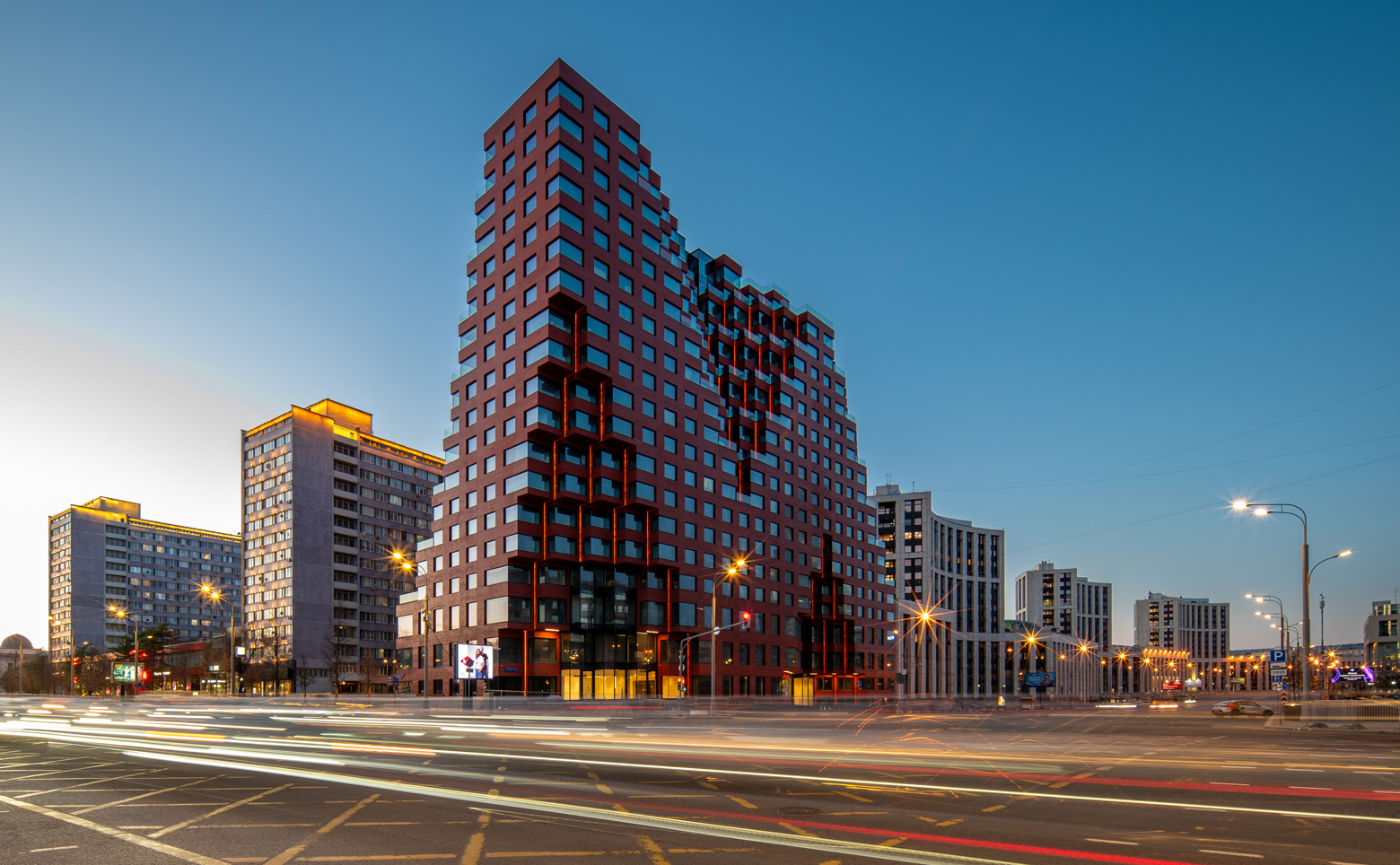 Комплекс апартаментов представляет собой двухсекционный кирпично-монолитный дом высотой 19 этажей, внешний облик которого выполнен по индивидуальному архитектурному проекту голландской студии MVRDV. Для наружной облицовки фасадов здания используется долговечный и эстетически привлекательный декоративный кирпич в сочетании с клинкерной плиткой.
