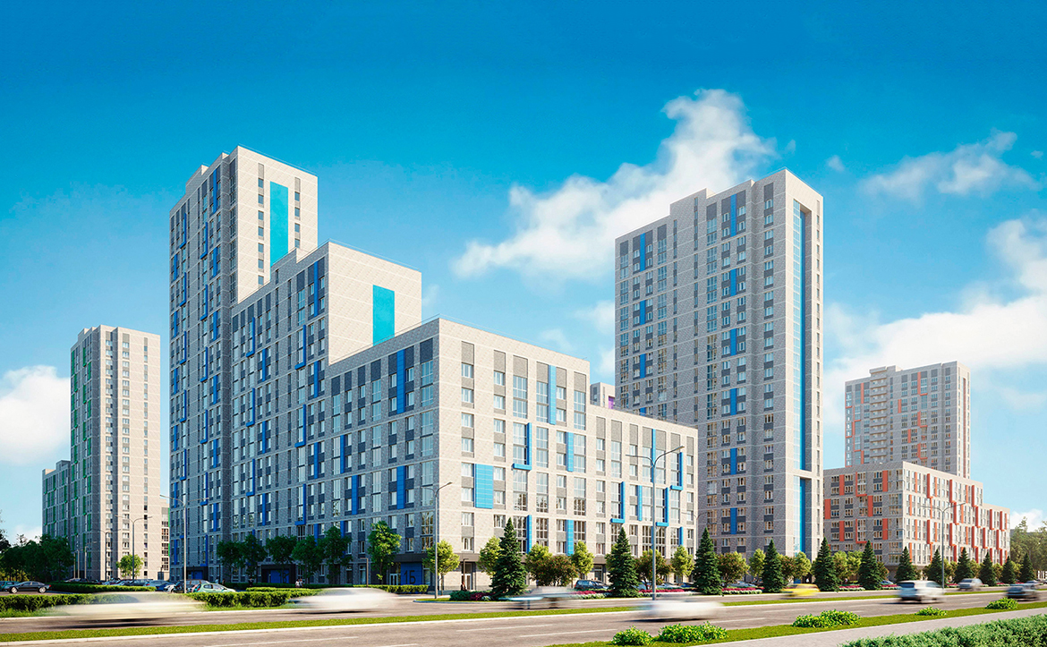 Жилой комплекс комфорт-класса представлен корпусами переменной этажности от 7 до 26 этажей. Здания построены по кирпично-монолитной технологии с фасадами под штукатурку. В домах предусмотрены пассажирские и грузовые лифты. Входные группы выполнены с дизайнерской отделкой. На первых этажах размещены колясочные и велосипедные, а также лапомойка и санузел.