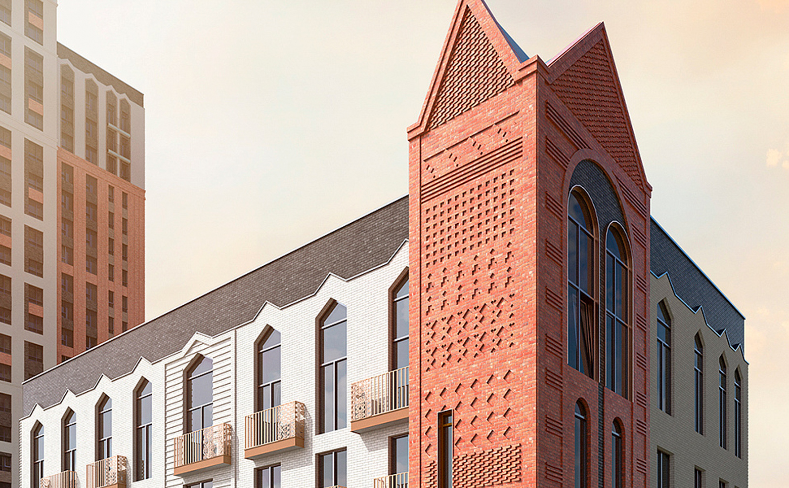 Жилой комплекс представляет собой современный проект, вдохновленный русской архитектурой и искусством, возведенный по технологии кирпично-монолитного строительства с фасадами, облицованными кирпичом. Первые этажи комплекса отведены под коммерческие помещения.