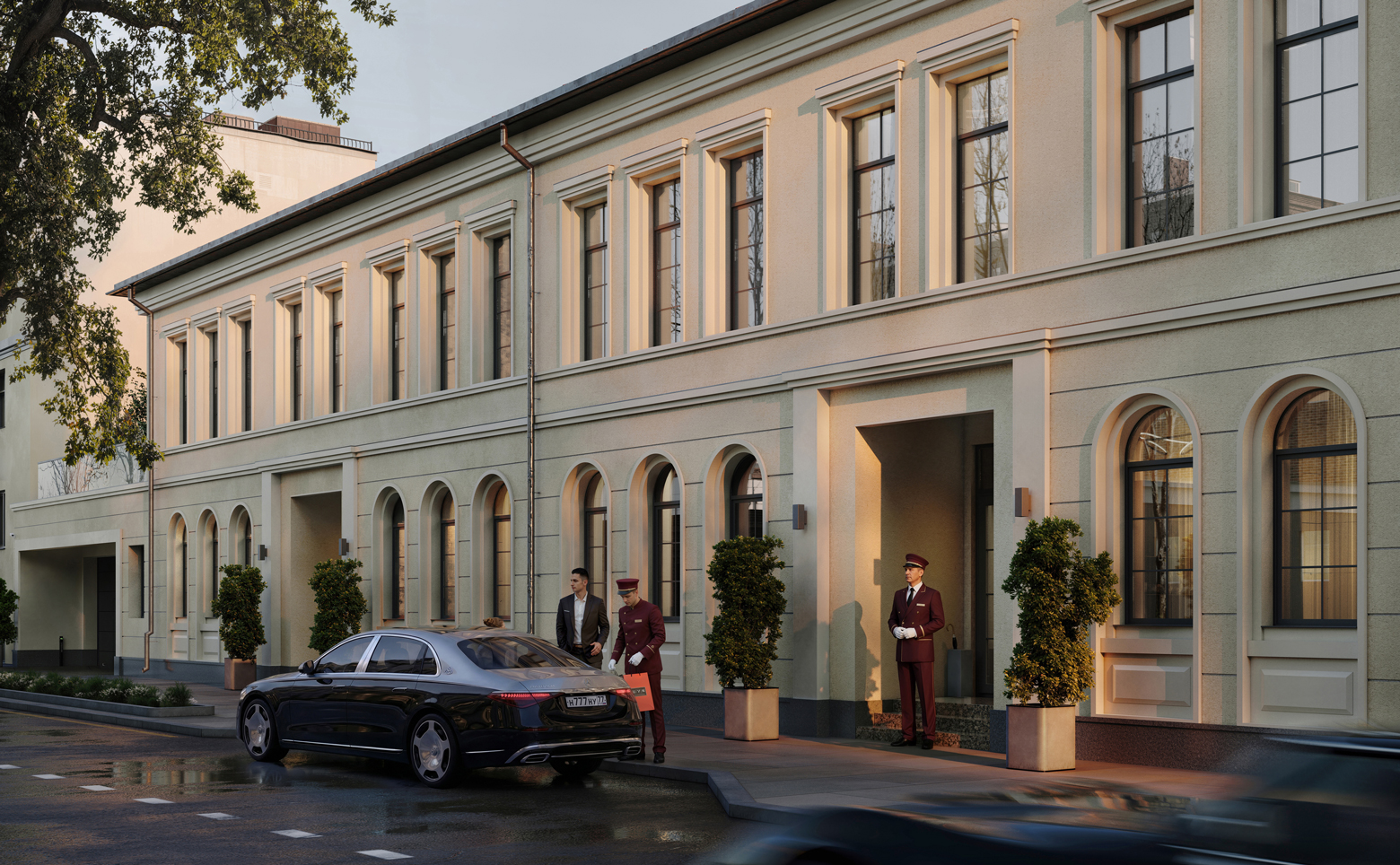 Элитный клубный квартал представляет собой малоэтажную застройку из 4 корпусов разной этажности. Здания возведены по монолитной технологии, фасады выполнены с применением вентилируемых систем и облицованы декоративным камнем. В комплексе предусмотрены дизайнерские лобби с лаунж-зонами, круглосуточный консьерж-сервис и колясочные. В первом корпусе расположено гранд-лобби с потолками высотой 4 м, созданное по проекту бюро Олега Клодта.