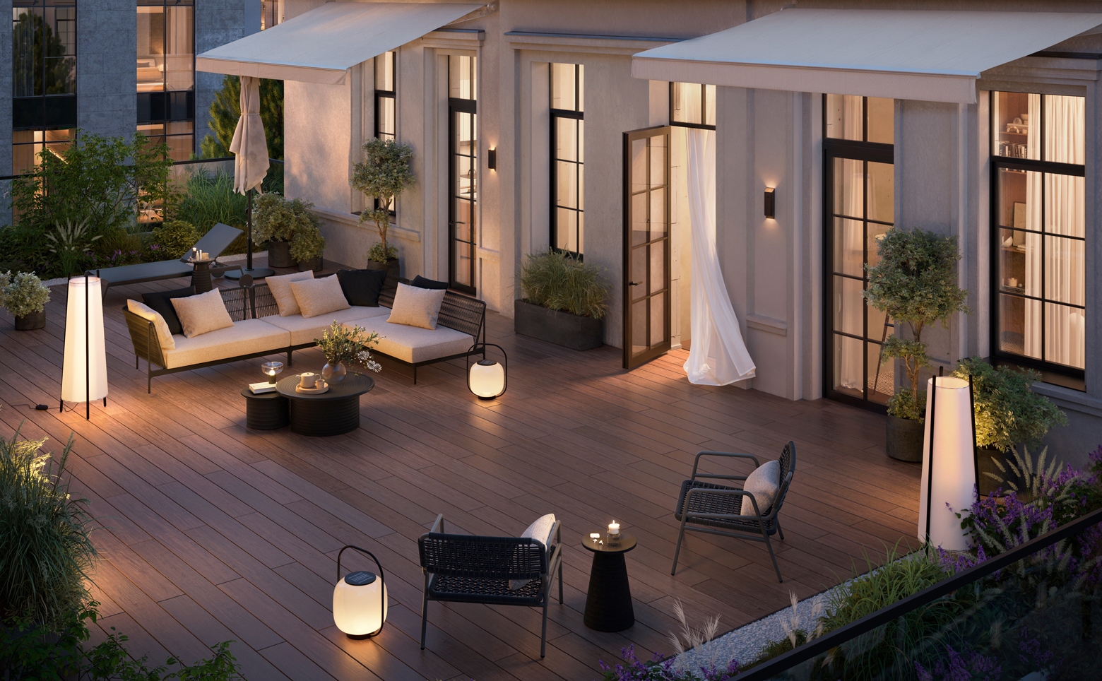 В проекте представлены квартиры с 1–5 спальнями. На первых этажах спроектированы варианты с патио и собственной приватной территорией. Также доступны опции с террасами, пентхаусы и двухэтажные городские виллы с личным входом и лифтом в подземный паркинг. В помещениях установлены панорамные окна, высота потолков достигает 3,9 м. Из части квартир открываются виды на Садовническую набережную, панораму района, Московский Кремль и внутренний плодовый сад. Инженерные системы включают приточно-вытяжную вентиляцию и фильтрацию воздуха, центральную систему кондиционирования с индивидуальным управлением и станцию очистки воды до уровня питьевой.