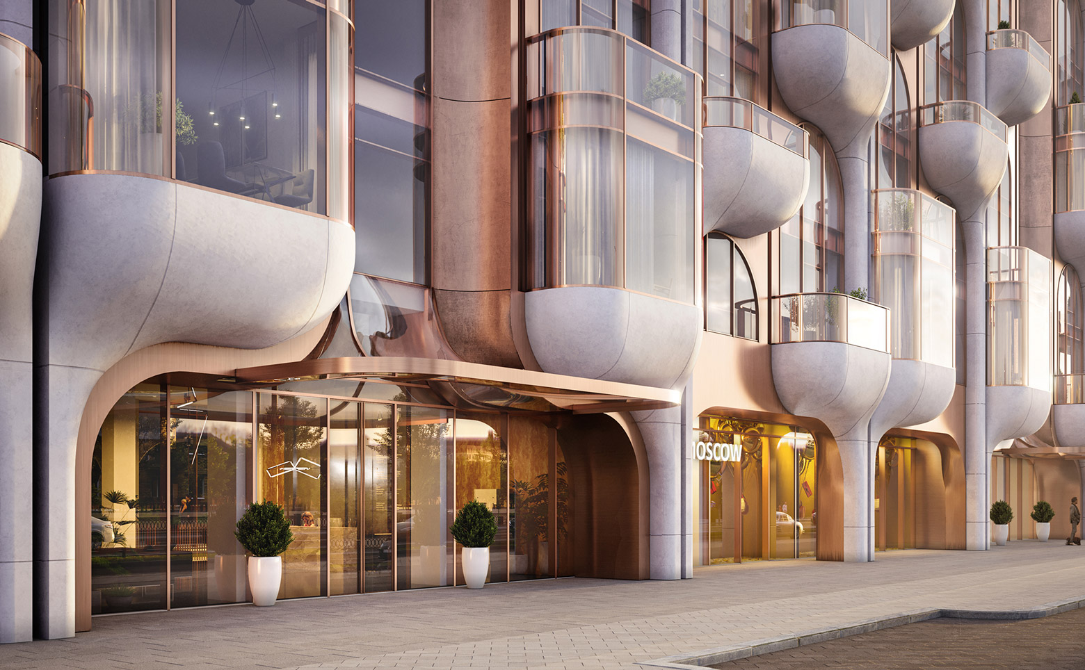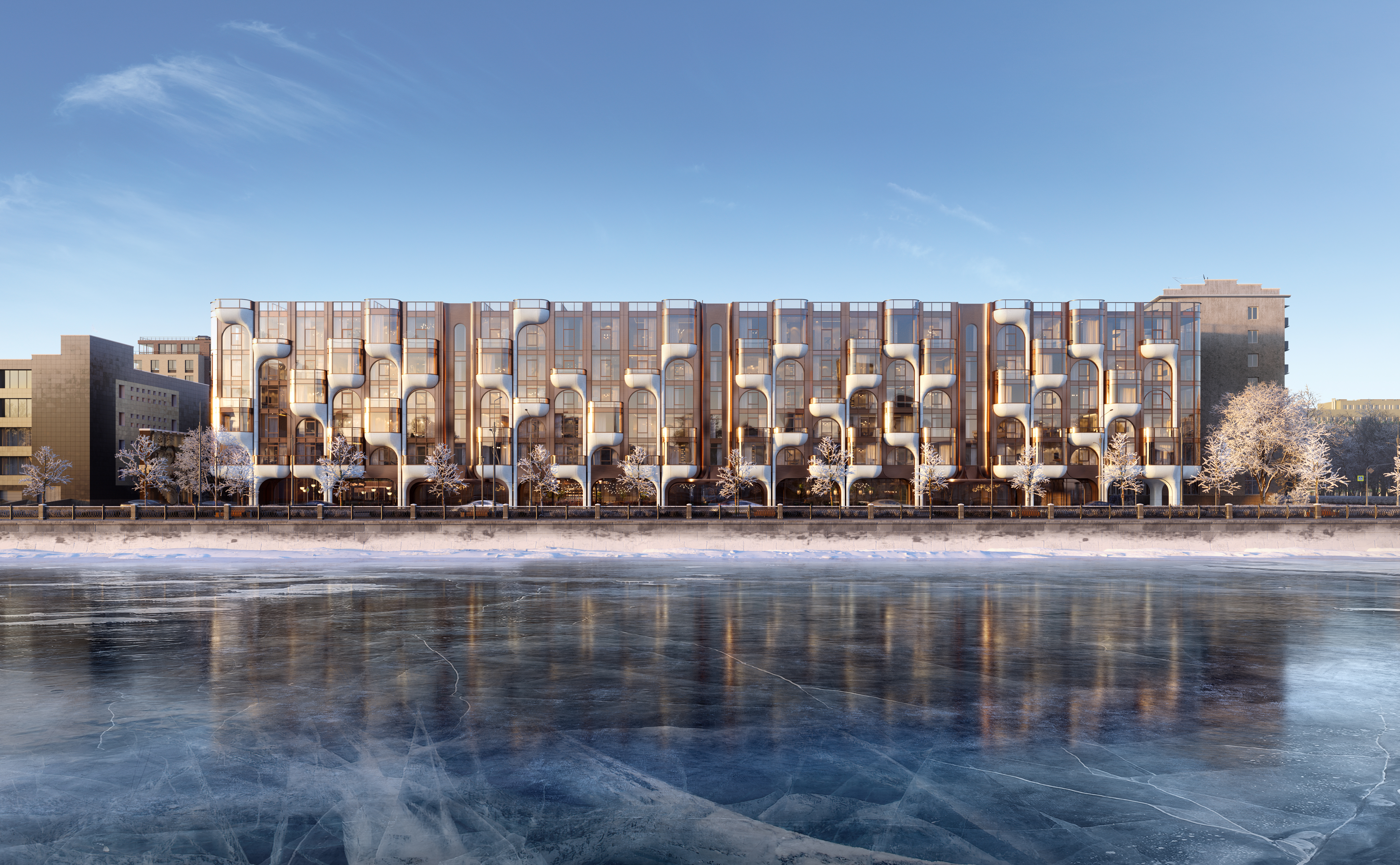 Делюкс-резиденция — проект американского архитектурного бюро ODA. В оформлении зданий используется уникальная ритмика балконов и эркеров, контраст стекла и меди. В дизайнерском лобби предусмотрена зона ресепшен с консьерж-службой 24/7, а для питомцев оборудована лапомойка.