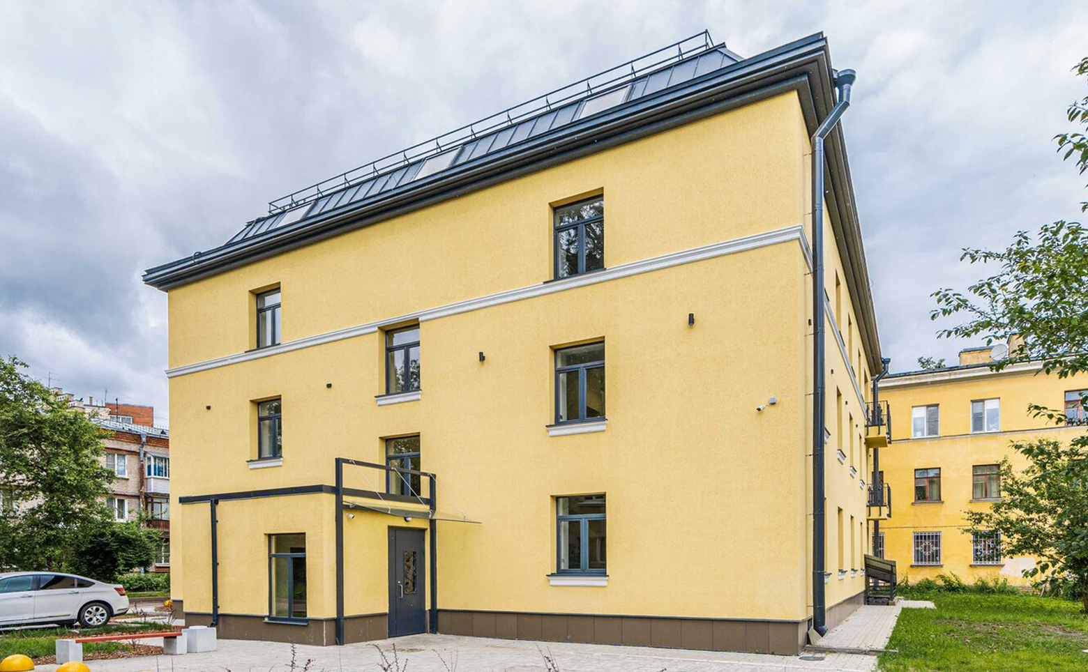 Клубный дом представляет собой малоэтажное здание высотой в 4 этажа, что подчеркивает его уединенность и комфорт. Монолитная конструкция обеспечивает долговечность и надежность, а оштукатуренный фасад дополнен архитектурной подсветкой. Входная группа оснащена системой контроля доступа, что повышает уровень безопасности и комфорта для жителей.
