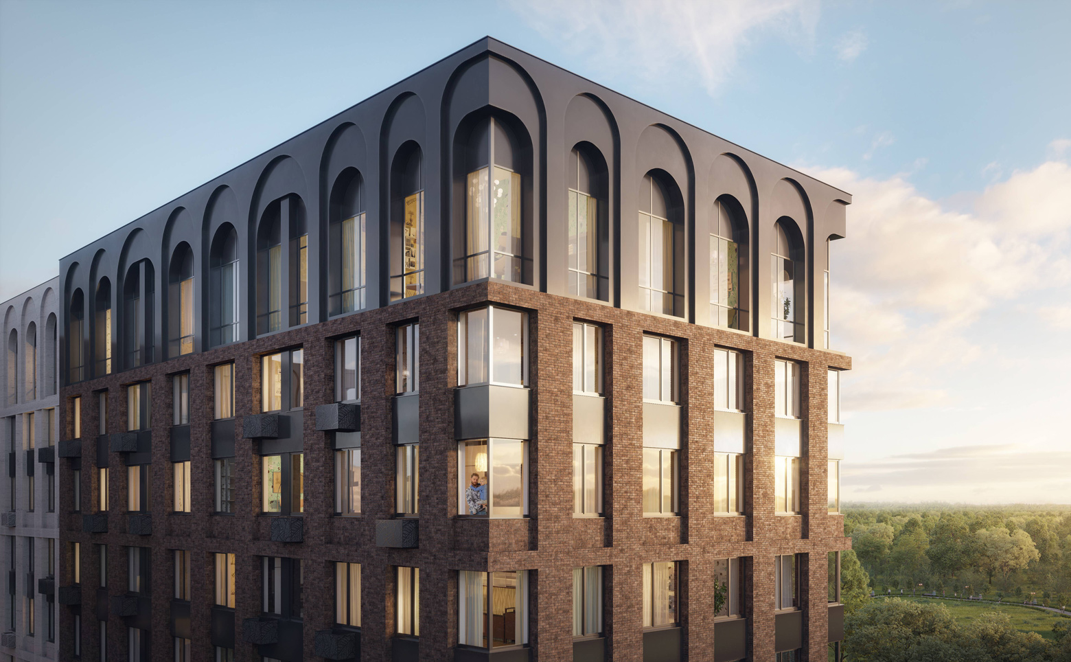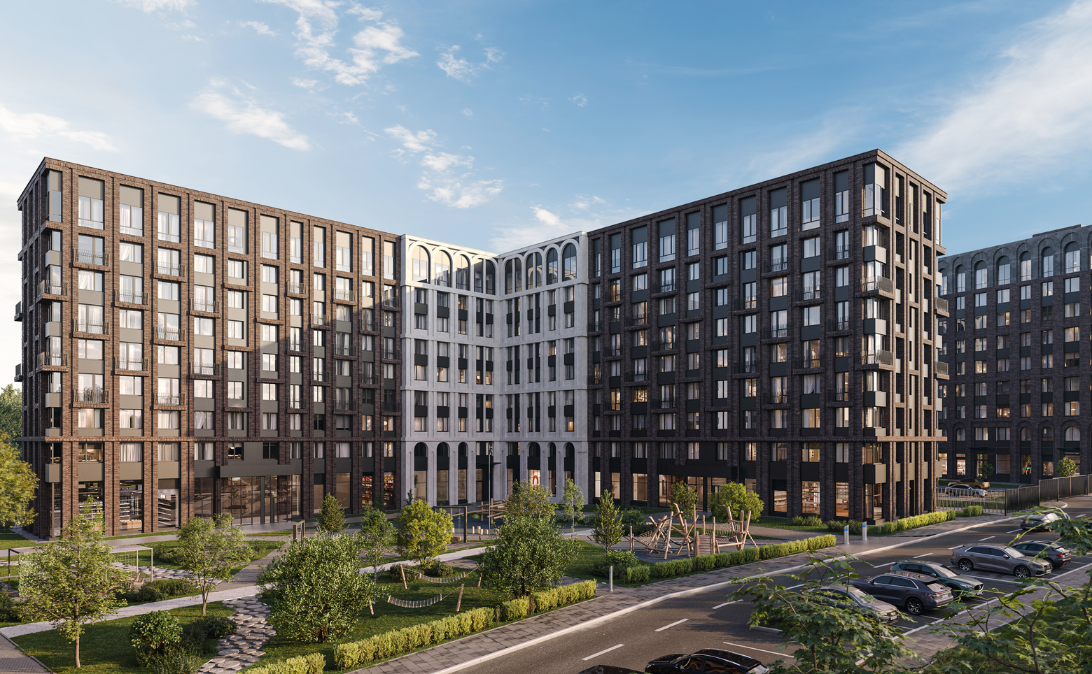 Территория, спроектированная архитекторами бюро А4, воплощает в себе философию английского сада. В проекте выполнен ландшафтный дизайн дворов, разноуровневые посадки придают объем и глубину, установлены детские и спортивные площадки, продуманы места для отдыха. На первых этажах разместились коммерческие помещения. Для владельцев автомобилей предусмотрена плоскостная парковка.