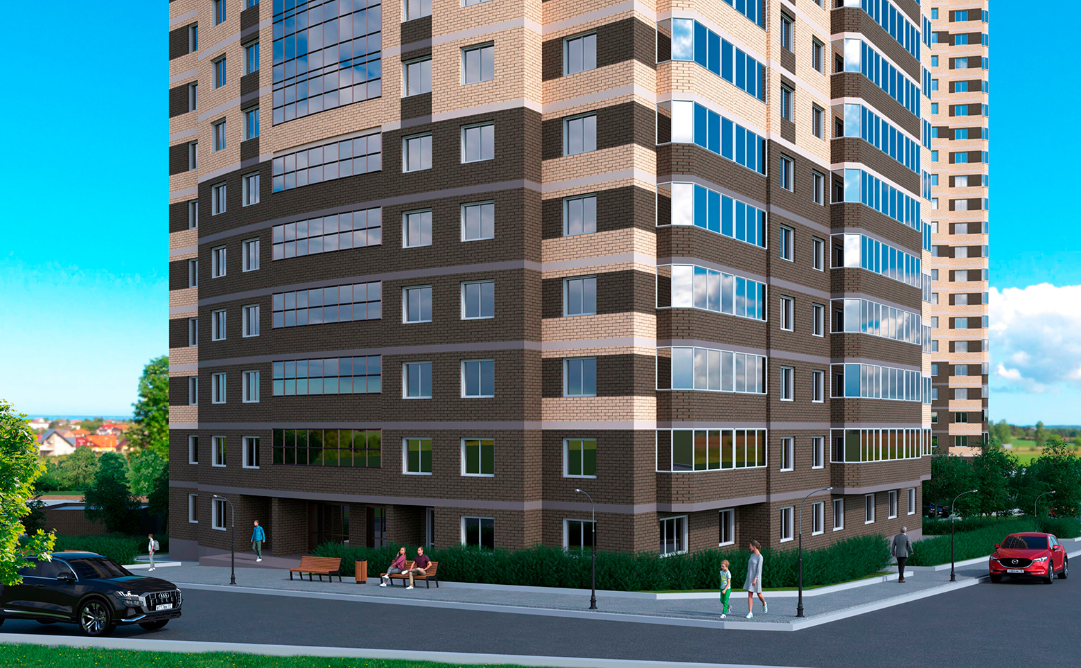В проекте предложено множество планировочных решений: от студий до 3-комнатных квартир. Сдаются они с подчистовой отделкой и стандартными окнами. Высота потолков — 2.78, а на 1 этаже — 3 метра.