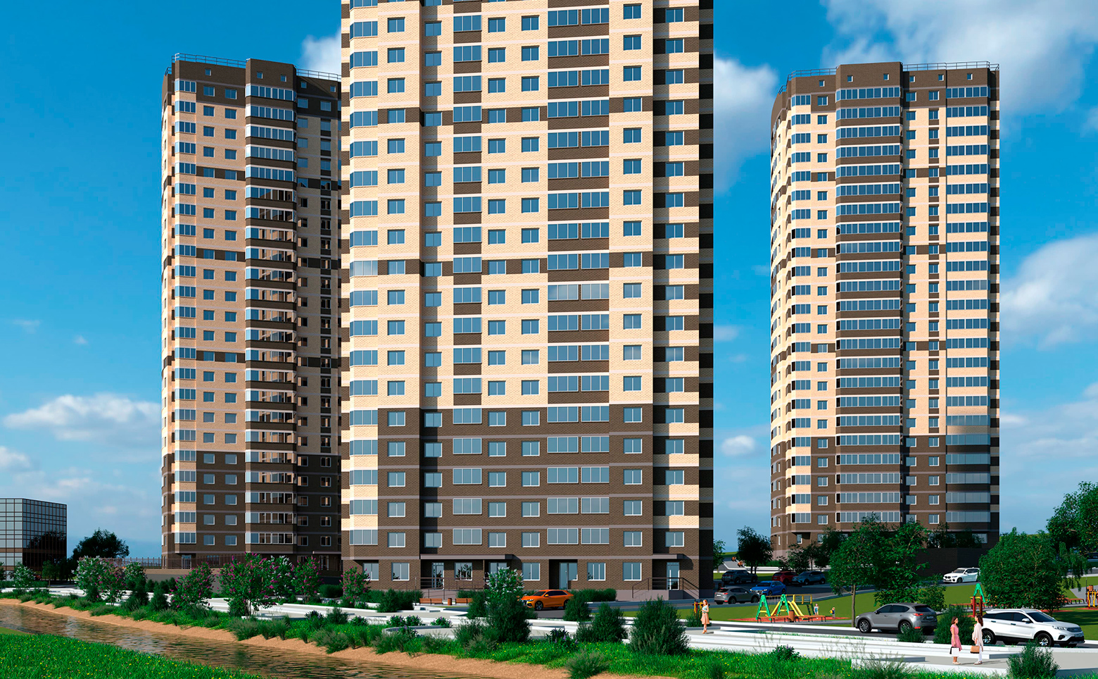 Жилой комплекс состоит из пяти 24-этажных корпусов, возведенных по монолитной технологии строительства. Фасады облицованы кирпичом. Во входных группах выполнена дизайнерская отделка, установлены современные лифты.