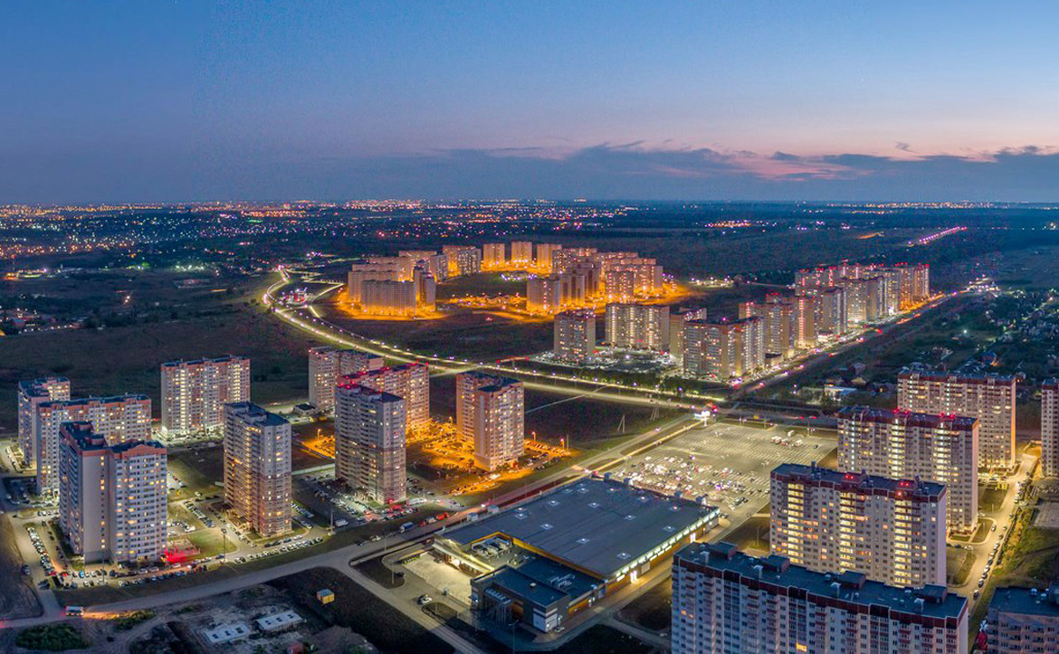 Жилой район представляет собой огромный по масштабам комплексного освоения территории объект. Площадь застройки 740 га, а между домами большое расстояние и широкие тротуары. Во всех корпусах выполнена дизайнерская отделка входных групп и установлены современные лифты.