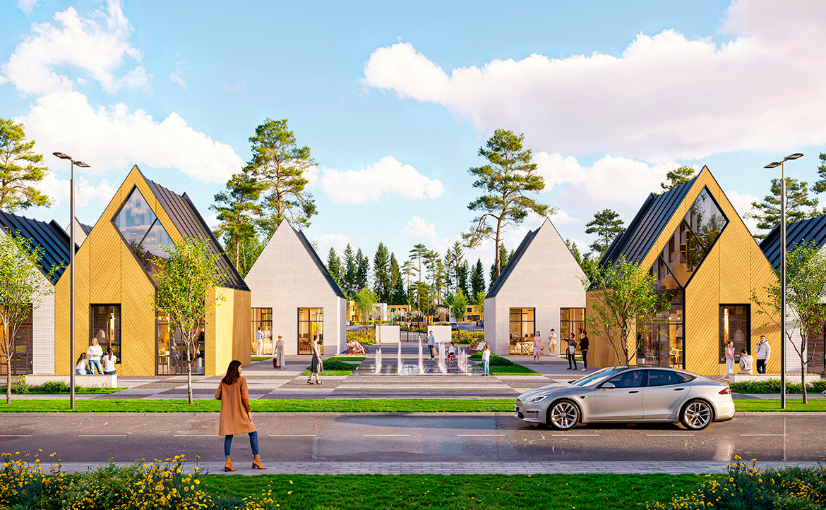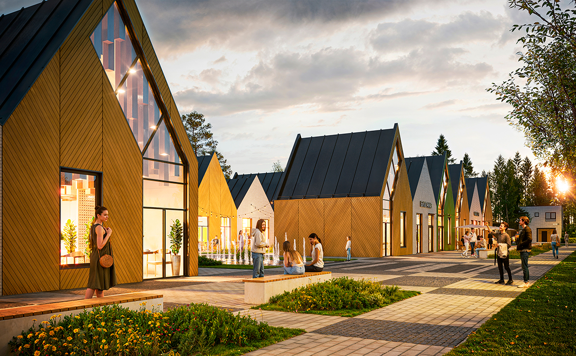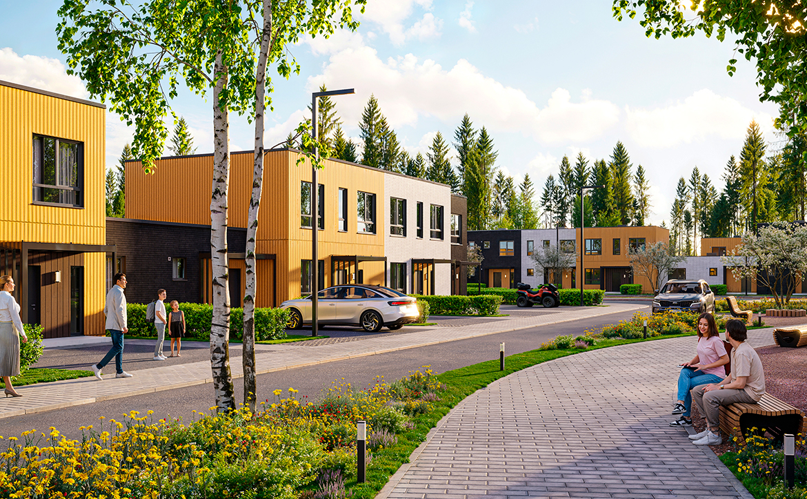 В коттеджном поселке предлагаются участки площадью от 2 до 10 соток, на которых представлены таунхаусы в скандинавском архитектурном стиле. Лаконичные формы, светлые фасады и натуральные материалы отражают эстетику датского квартала Нюхавн и органично вписываются в окружающий ландшафт. Дома построены по панельной технологии и отделаны декоративной штукатуркой.