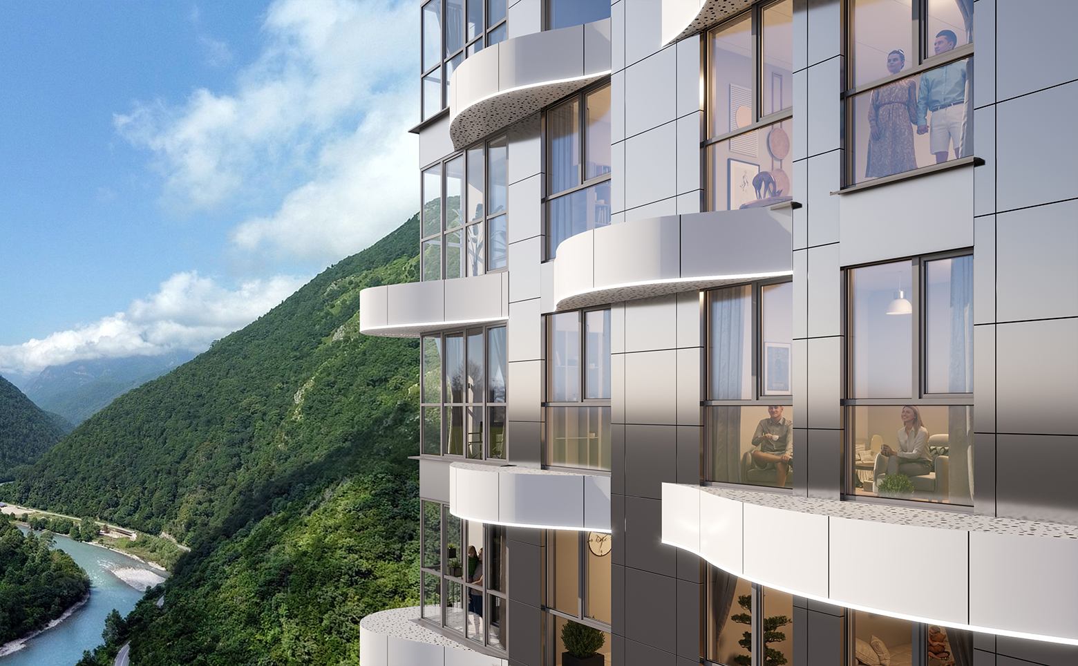 В проекте предложено множество планировочных решений: в наличии квартиры классического типа. Сдаются они с подчистовой отделкой, панорамными окнами и высотой потолков в 3 м. Некоторые квартиры имеют вид на лесной массив и горы.