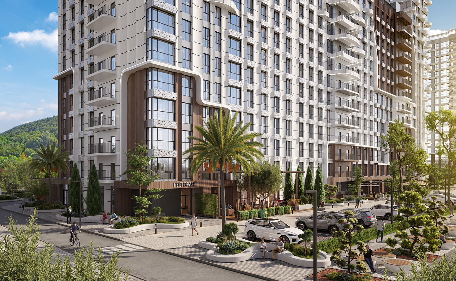 Жилой комплекс располагается в активно развивающемся Хостинском районе. В нескольких минутах ходьбы находятся поликлиники, школы, детские сады, кинотеатр, магазины и кафе. До центра Сочи можно добраться за 25 минут транспортом.
