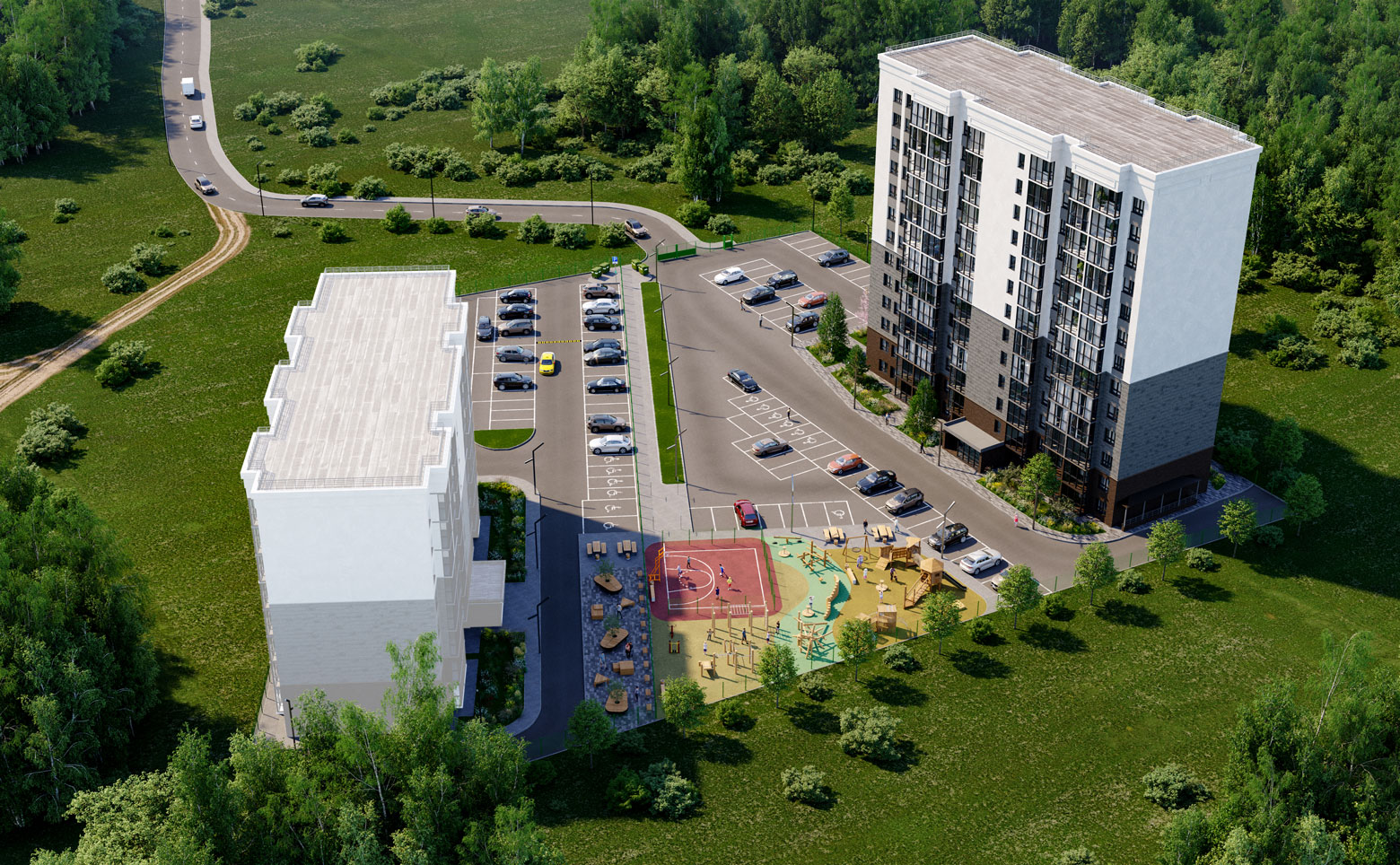 Территория комплекса благоустроена — имеется эко-среда для жителей, безопасный двор, зона йоги и воркаута.