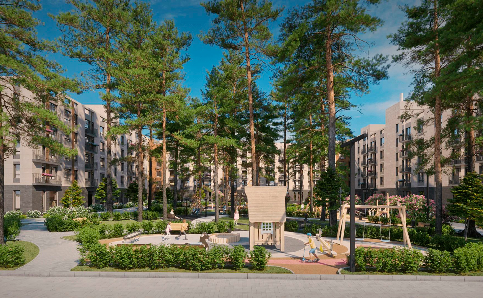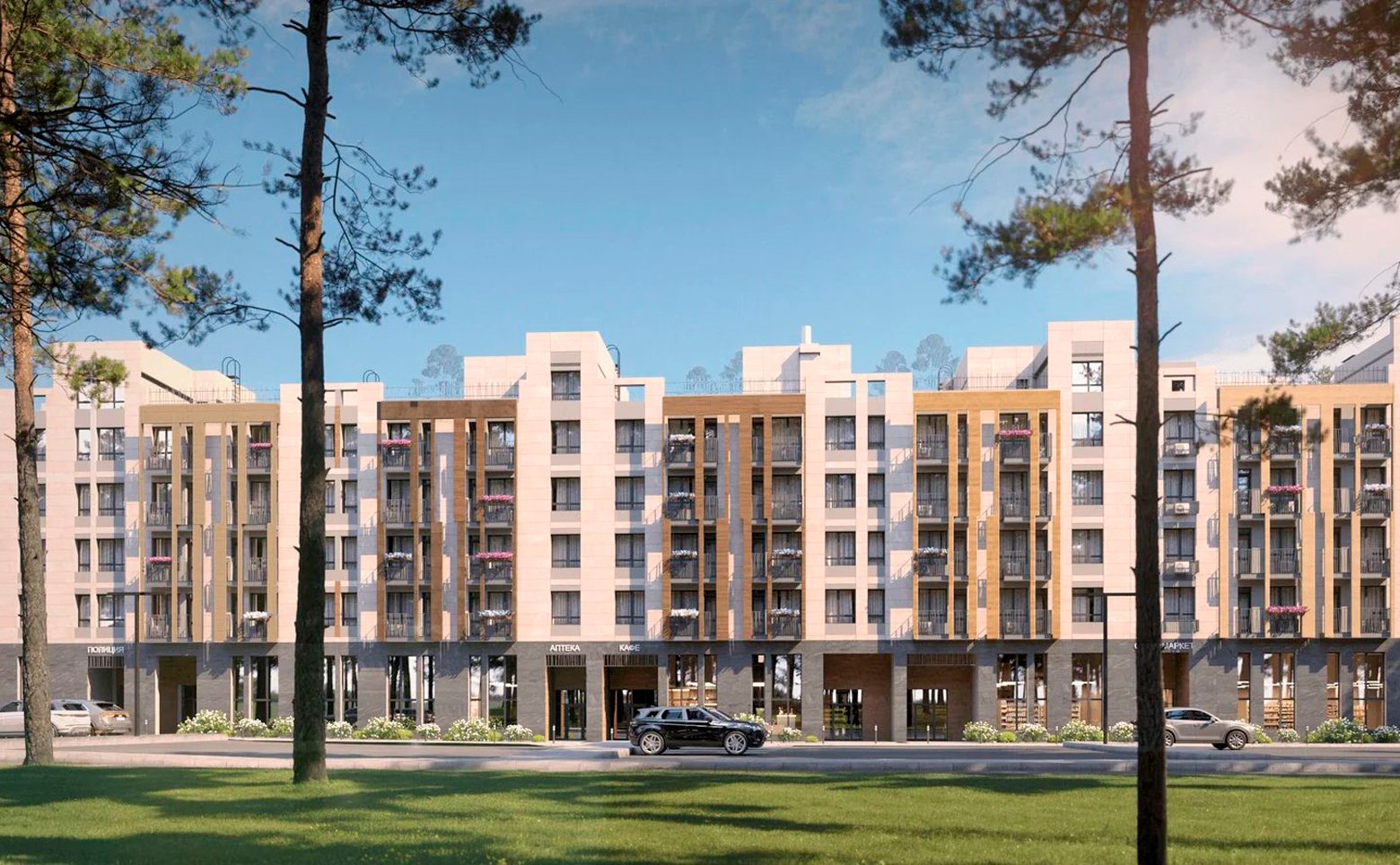 Камерный жилой комплекс состоит из 2 малоэтажных зданий в окружении сосновой рощи. Создатели проекта вдохновились жизнью уровня бизнес-класса и воплотили загородный бутик-квартал с собственной инфраструктурой. Вентилируемые фасады зданий облицованы керамогранитом. В комплексе предусмотрены сквозные входные группы, а также дизайнерское лобби с панорамным остеклением, зоной отдыха и лифтом. На первых этажах расположены зоны для хранения колясок и велосипедов, гостевой санузел, мойка для колес и лап питомцев.