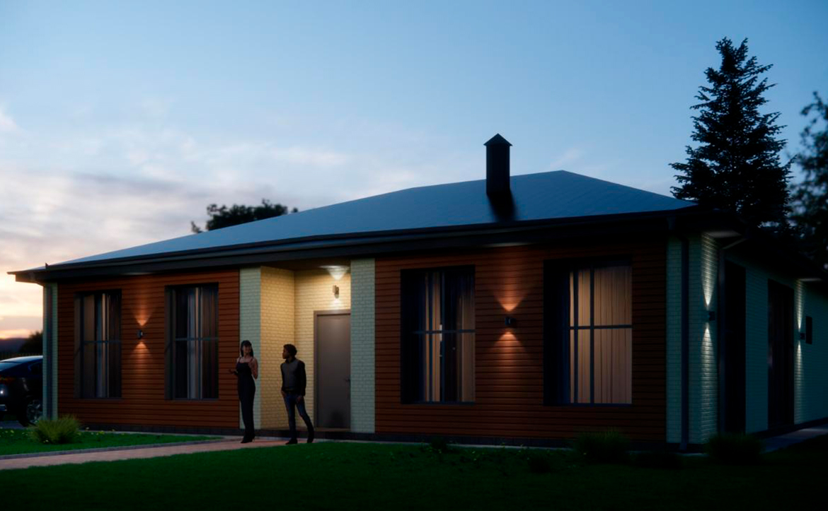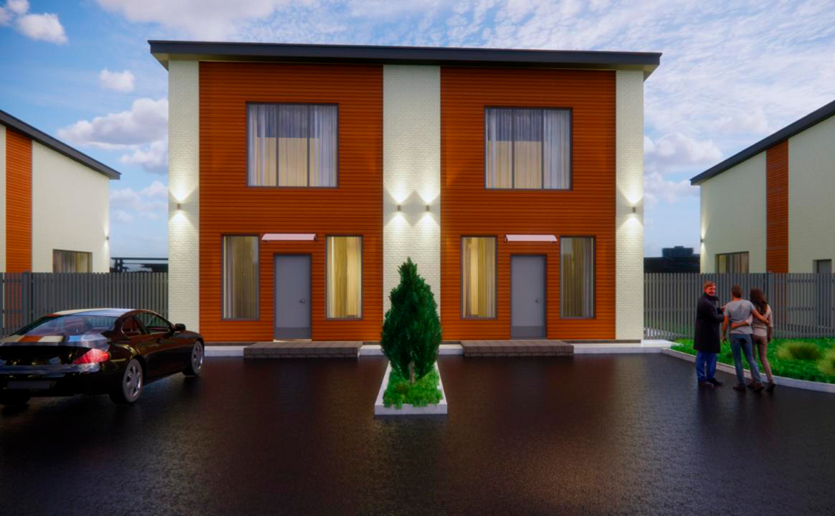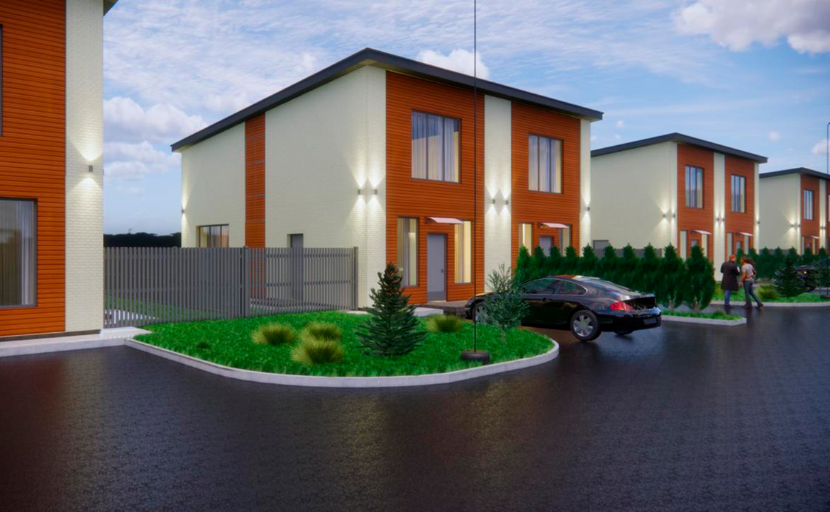 В проекте предлагаются коттеджи в едином архитектурном стиле с увеличенными окнами и потолками от 2,7 до 5 метров. Помещения идут без отделки, но с установленными входными дверями и оконными блоками. Также в базовую комплектацию входит монтаж забора с откатными воротами.