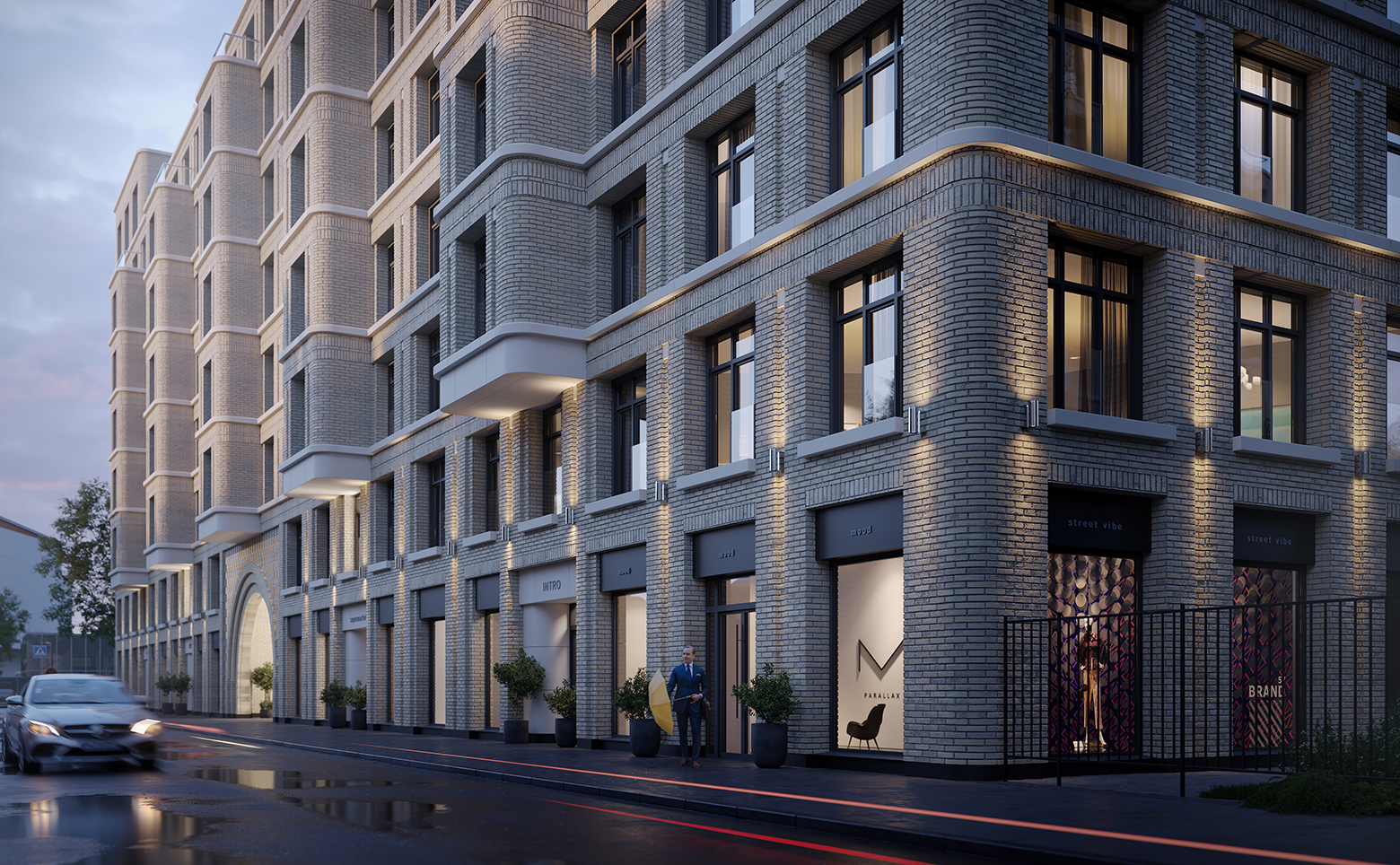 Дом строится в историческом центре Петербурга — Петроградском районе. Композиционно комплекс состоит из трёх корпусов: одного пятиэтажного и двух девятиэтажных. Они объединены приватным двором с круглосуточной охраной. Двор разделен на тематические зоны: для детей, подростков и взрослых. Детская игровая зона удалена от мест для релаксации и находится на своеобразном подиуме.