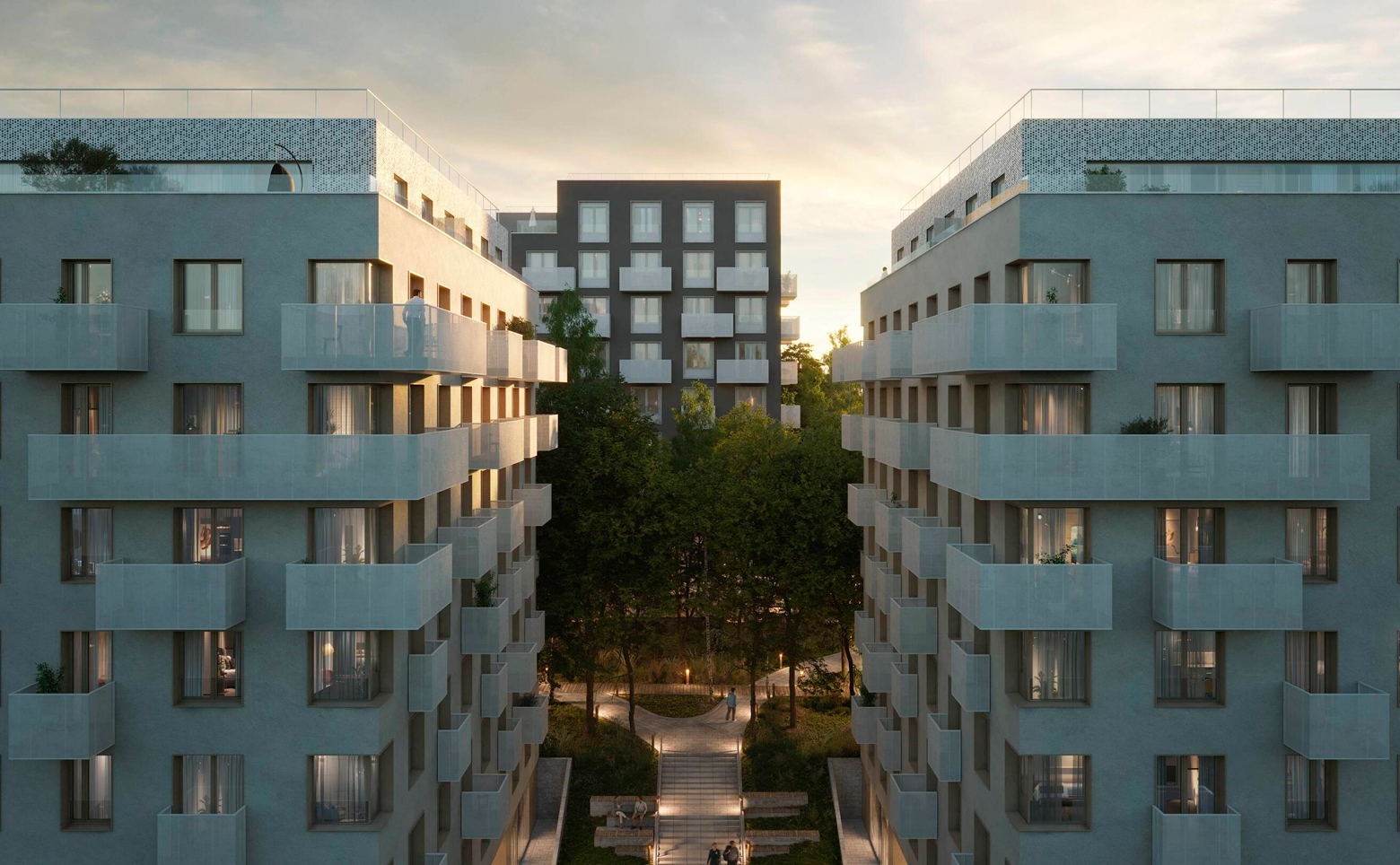 Территория комплекса благоустроена и озеленена, обустроены детские и спортивные площадки, спортивный зал и бассейн. Для комфорта жильцов предусмотрены колясочные и кладовые для хранения сезонных вещей и оборудования, а также подземный паркинг с прямым доступом на лифте.