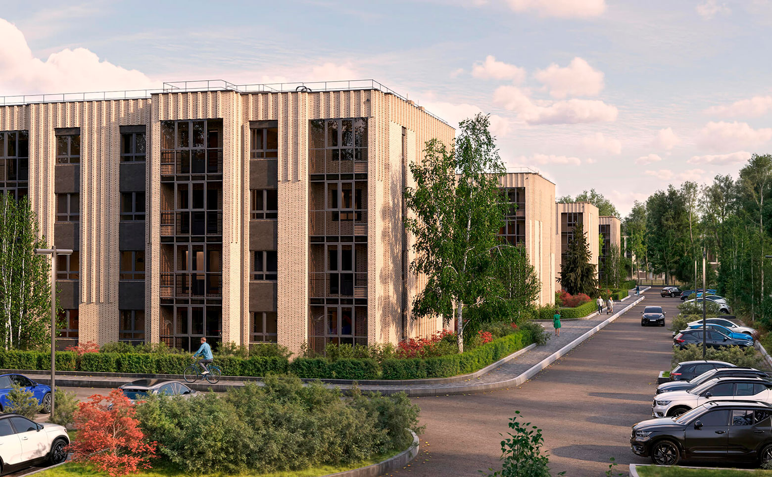 Жилой комплекс комфорт-класса представлен корпусами высотой 5 этажей. Дома построены по кирпичной технологии с фасадами из облицовочного кирпича.