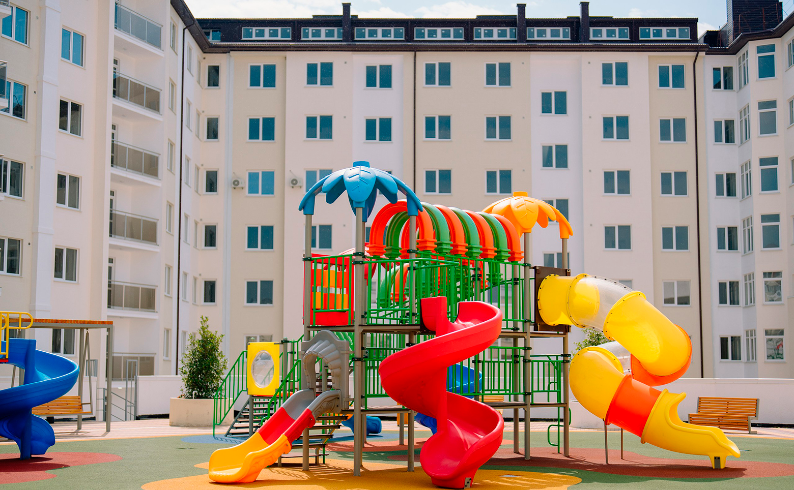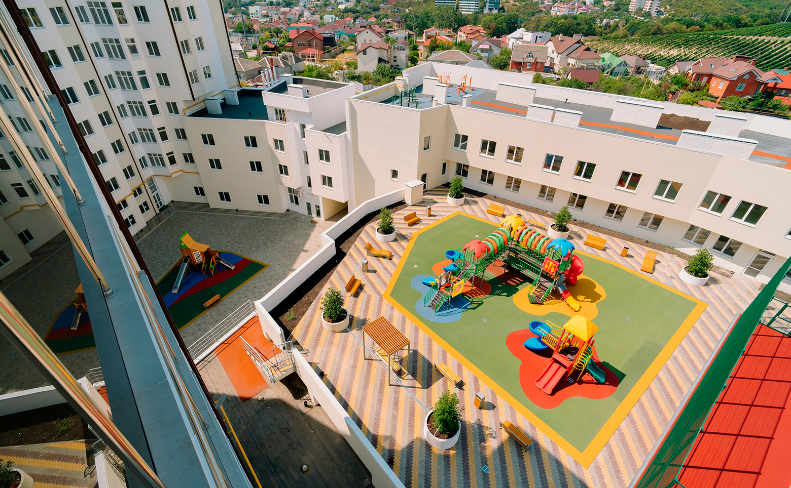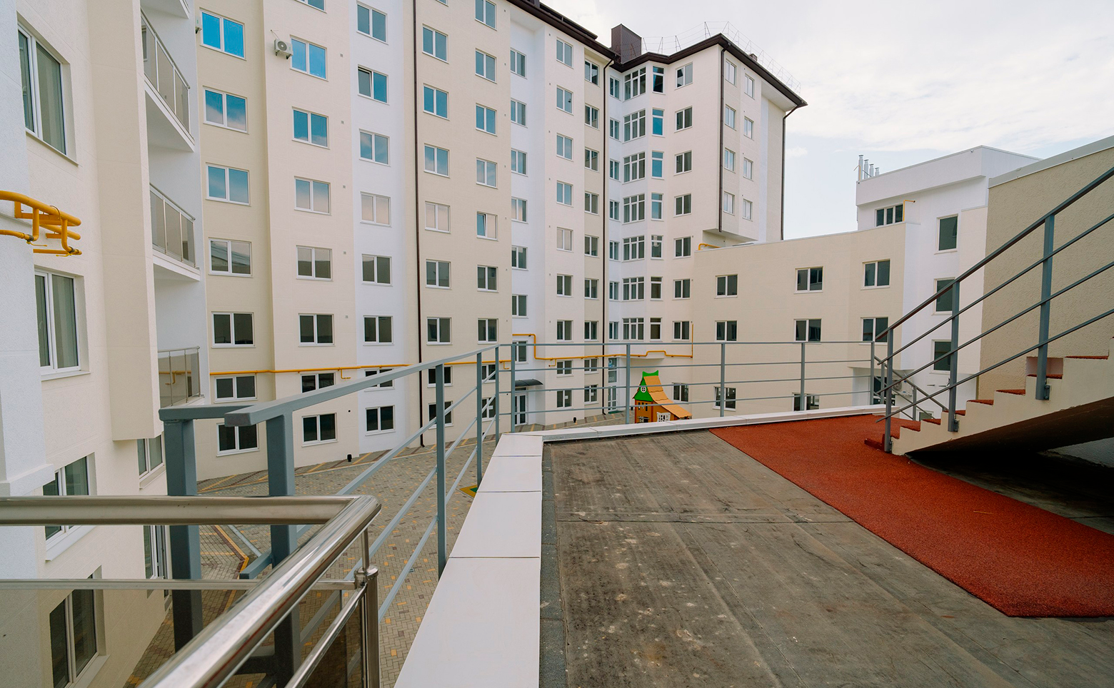 Жилой комплекс благоустроен спортивными и детскими площадками, зоной отдыха, круглосуточной охраной, видеонаблюдением в подъездах, лифтах и на придомовой территории. Для автомобилистов предусмотрен охраняемый подземный паркинг, оснащенный системами видеонаблюдения и пожаротушения.