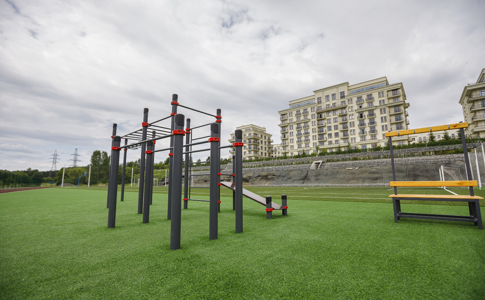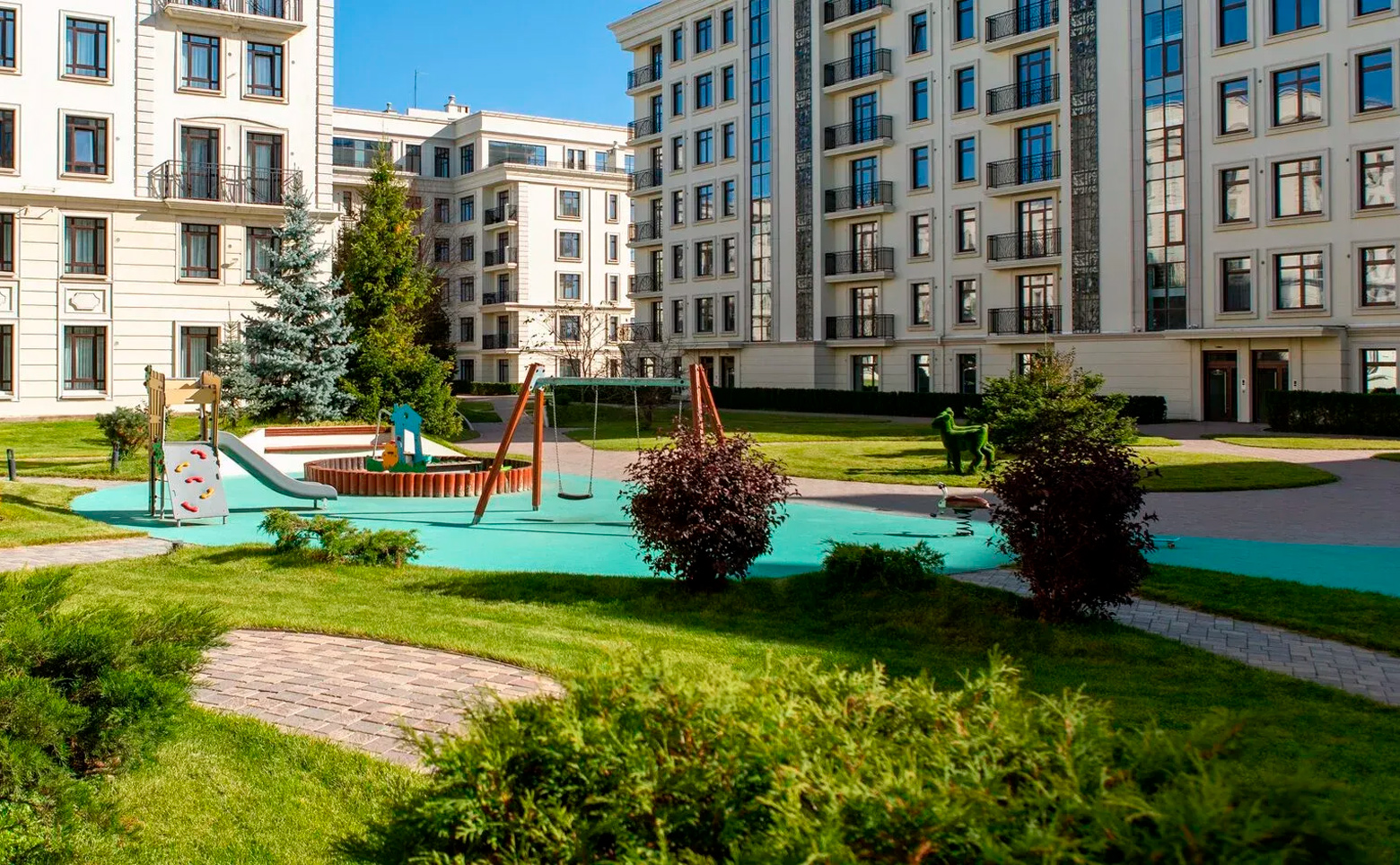 В жилом комплексе за порядком следит собственная служба безопасности, вход осуществляется по электронным пропускам. По всему периметру комплекса ведется видеонаблюдение. На благоустроенной территории комплекса установлены детские площадки, спроектированы прогулочные дорожки. Во дворе, реализованном по концепции двор без машин, предусмотрено ландшафтное озеленение. Для владельцев автомобилей спроектирован подземный паркинг.