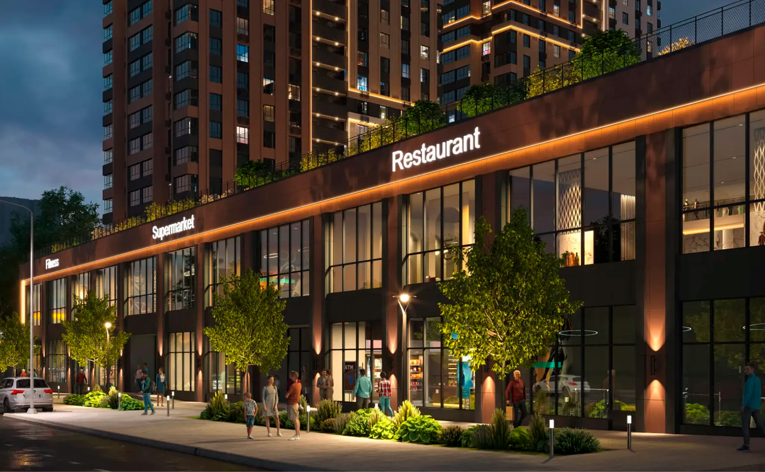 Территория жилого комплекса закрытая и охраняемая. Ведётся круглосуточное видеонаблюдение. На территории проекта предусмотрен собственный детский сад, спортивные и детские площадки с безопасным покрытием, плавно переходящими в пространство для отдыха с декоративными кустарниками и газонами. Для владельцев автомобилей предусмотрен подземный паркинг.